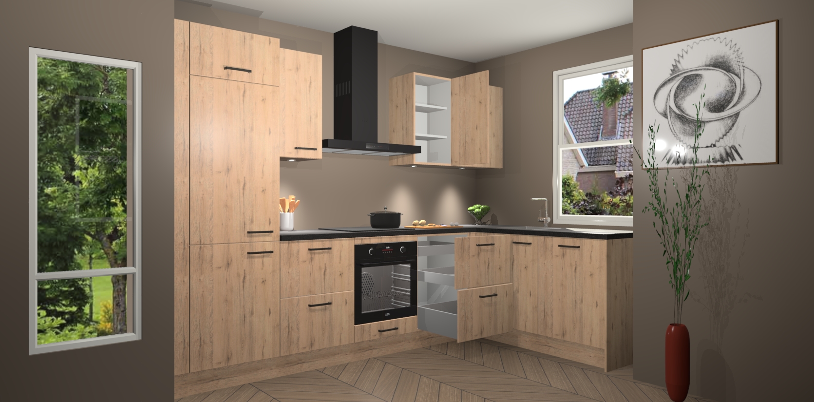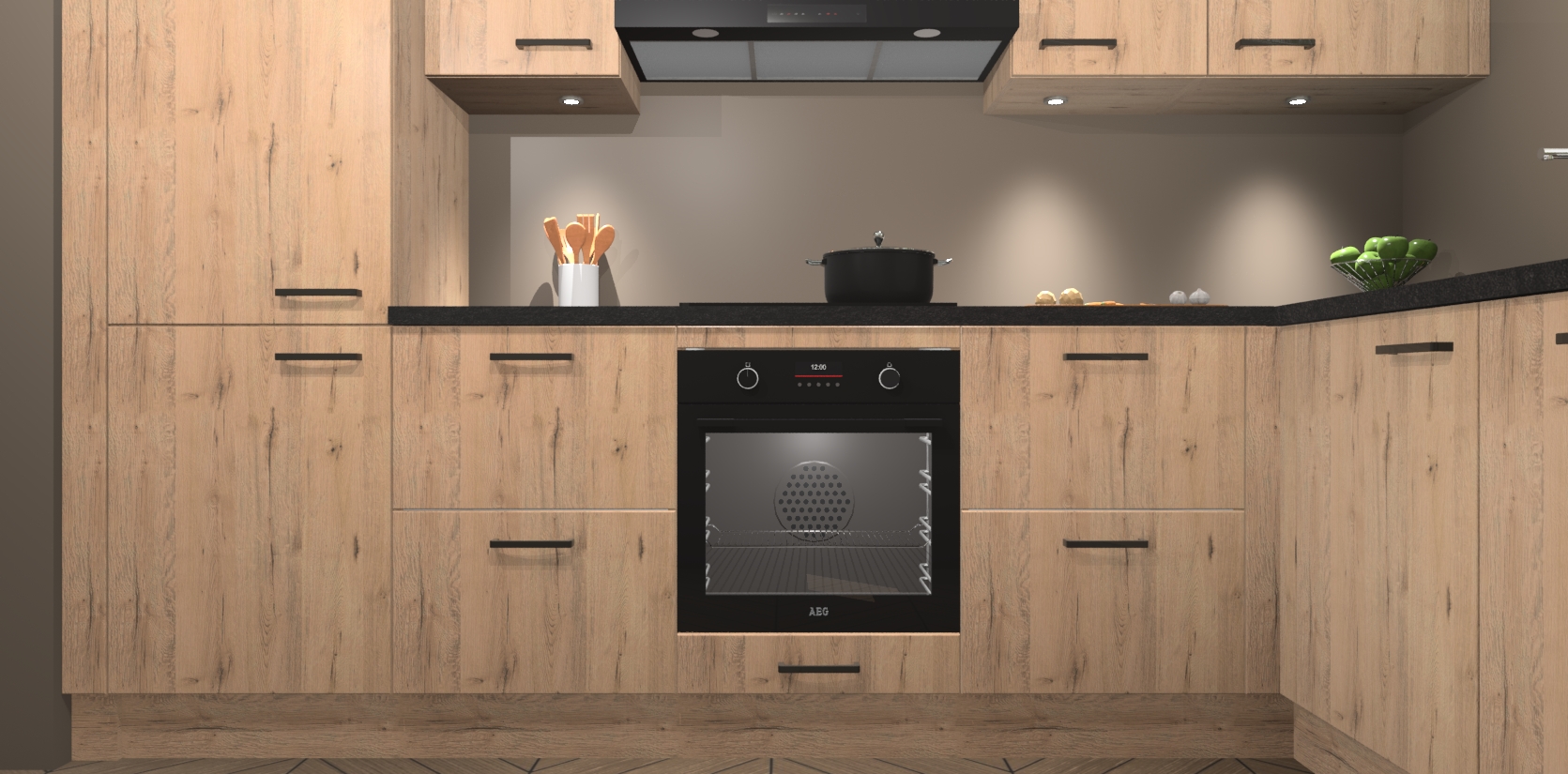 De Madera Natuur keuken Geneve is uitgerust met 5 inbouwapparaten - een oven, inductiekookplaat, afzuigkap, vaatwasser en koelkast - voor al uw kook- en bewaarbehoeftes. U kunt deze apparaten desgewenst eenvoudig upgraden naar AEG of de oven omruilen voor een combimagnetron na het plaatsen van uw bestelling. En met de soft close deuren, voldoende opbergruimte en kasten die voorgemonteerd worden geleverd, bent u in een mum van tijd klaar om heerlijke maaltijden te bereiden!