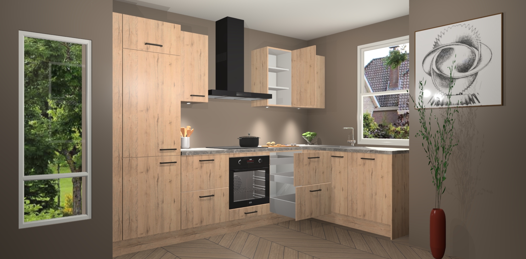 De Madera Natuur keuken Geneve is uitgerust met 5 inbouwapparaten - een oven, inductiekookplaat, afzuigkap, vaatwasser en koelkast - voor al uw kook- en bewaarbehoeftes. U kunt deze apparaten desgewenst eenvoudig upgraden naar AEG of de oven omruilen voor een combimagnetron na het plaatsen van uw bestelling. En met de soft close deuren, voldoende opbergruimte en kasten die voorgemonteerd worden geleverd, bent u in een mum van tijd klaar om heerlijke maaltijden te bereiden!