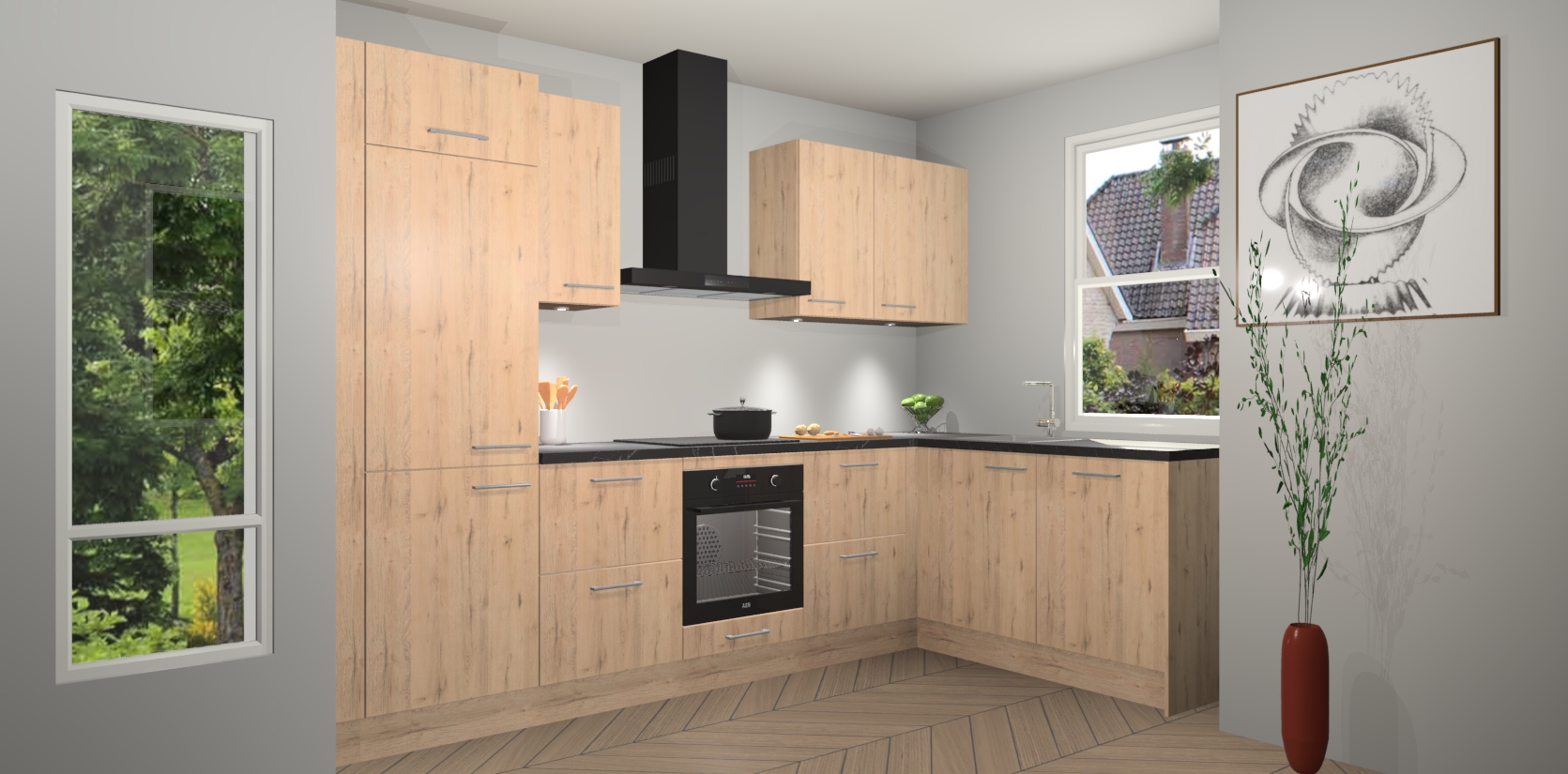 De Madera Natuur keuken Geneve is uitgerust met 5 inbouwapparaten - een oven, inductiekookplaat, afzuigkap, vaatwasser en koelkast - voor al uw kook- en bewaarbehoeftes. U kunt deze apparaten desgewenst eenvoudig upgraden naar AEG of de oven omruilen voor een combimagnetron na het plaatsen van uw bestelling. En met de soft close deuren, voldoende opbergruimte en kasten die voorgemonteerd worden geleverd, bent u in een mum van tijd klaar om heerlijke maaltijden te bereiden!