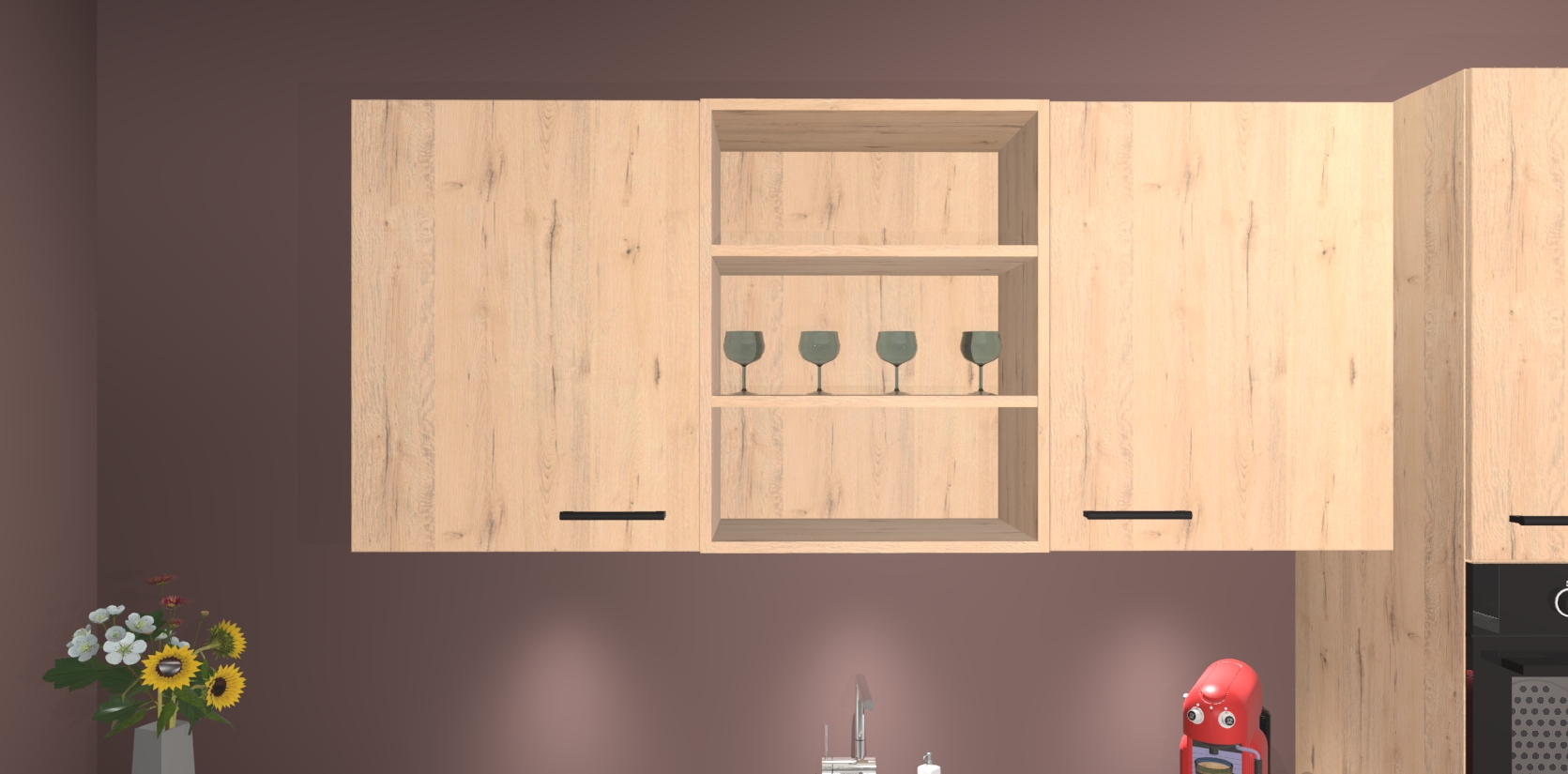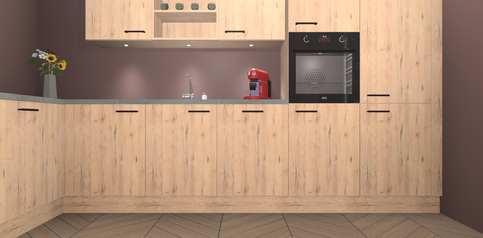 Over opbergruimte hoeft u zich ook geen zorgen te maken! Er is voldoende ruimte voor al uw culinaire behoeftes. Plus, we hebben al 5 inbouwapparaten meegeleverd die gemakkelijk na uw bestelling te upgraden zijn naar AEG: een oven, inductiekookplaat, afzuigkap, vaatwasser en koelkast. En maakt u zich geen zorgen - alle deuren sluiten zacht, dus u hoeft zich geen zorgen te maken over dichtslaande deuren of lawaai terwijl u kookt.