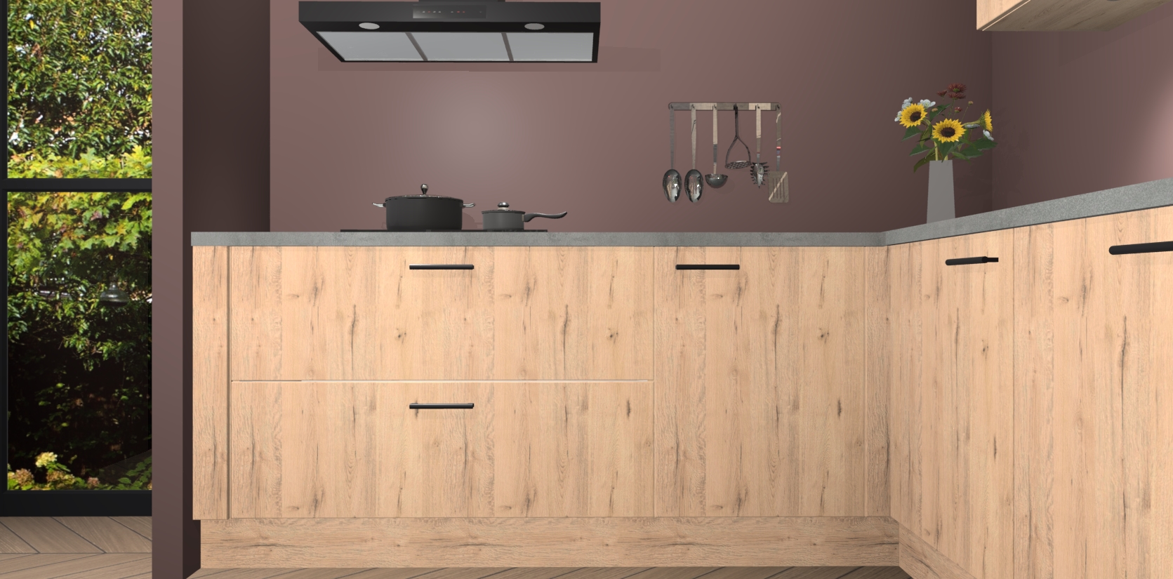 In deze box zijn alle kleuren verzameld van de deuren en werkbladen. Vraag de gratis kleurenbox aan en kijk thuis rustig verder!