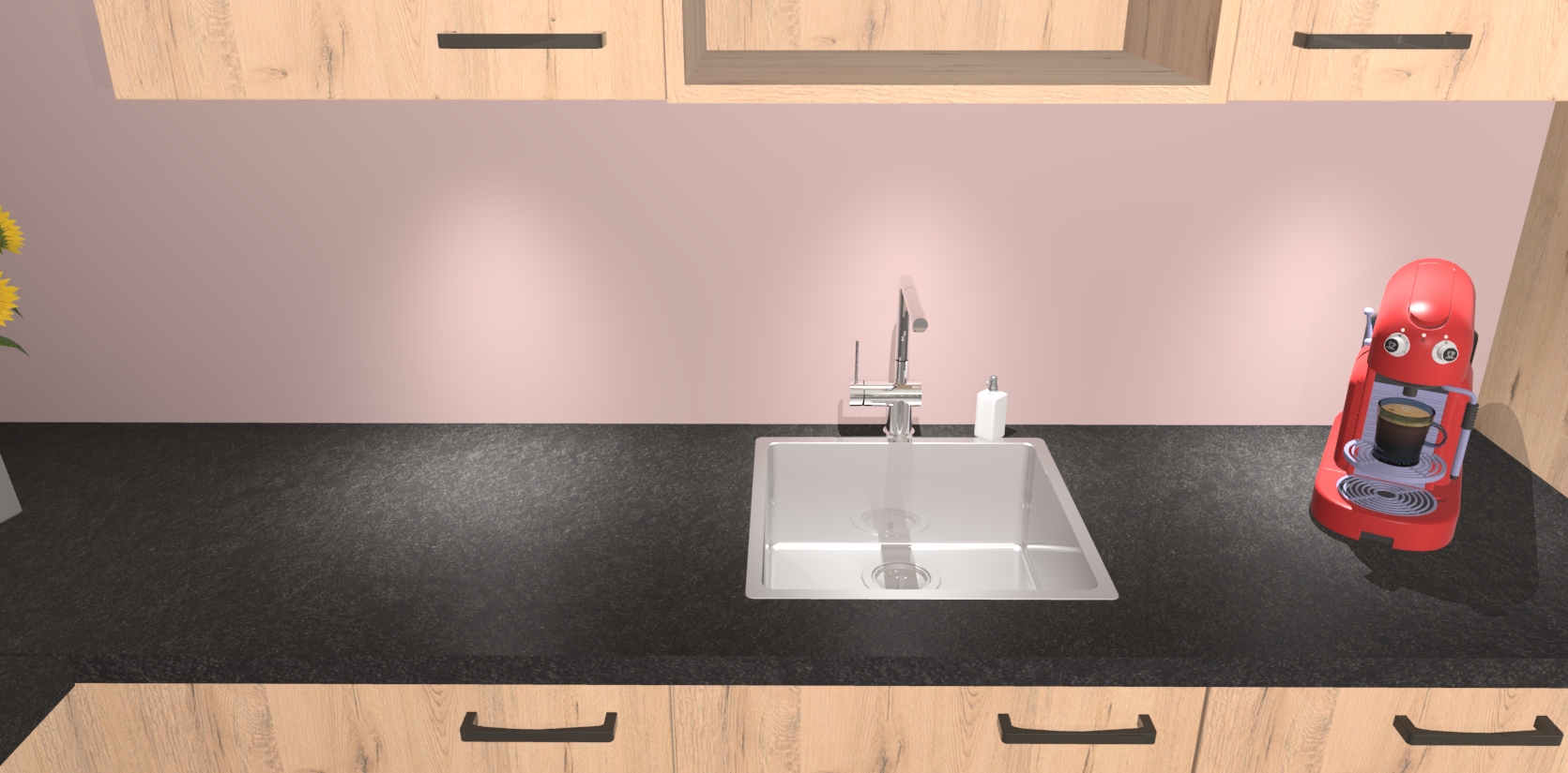- De spoelbak is nog niet in gevreesd. Dit dient tijdens het werk gedaan te worden
