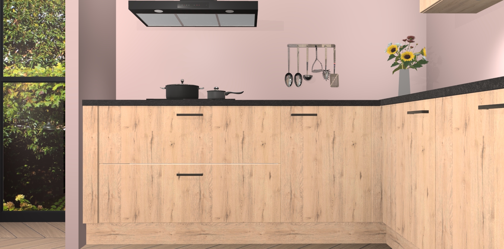Inclusief plinten, stelpoten en werkblad