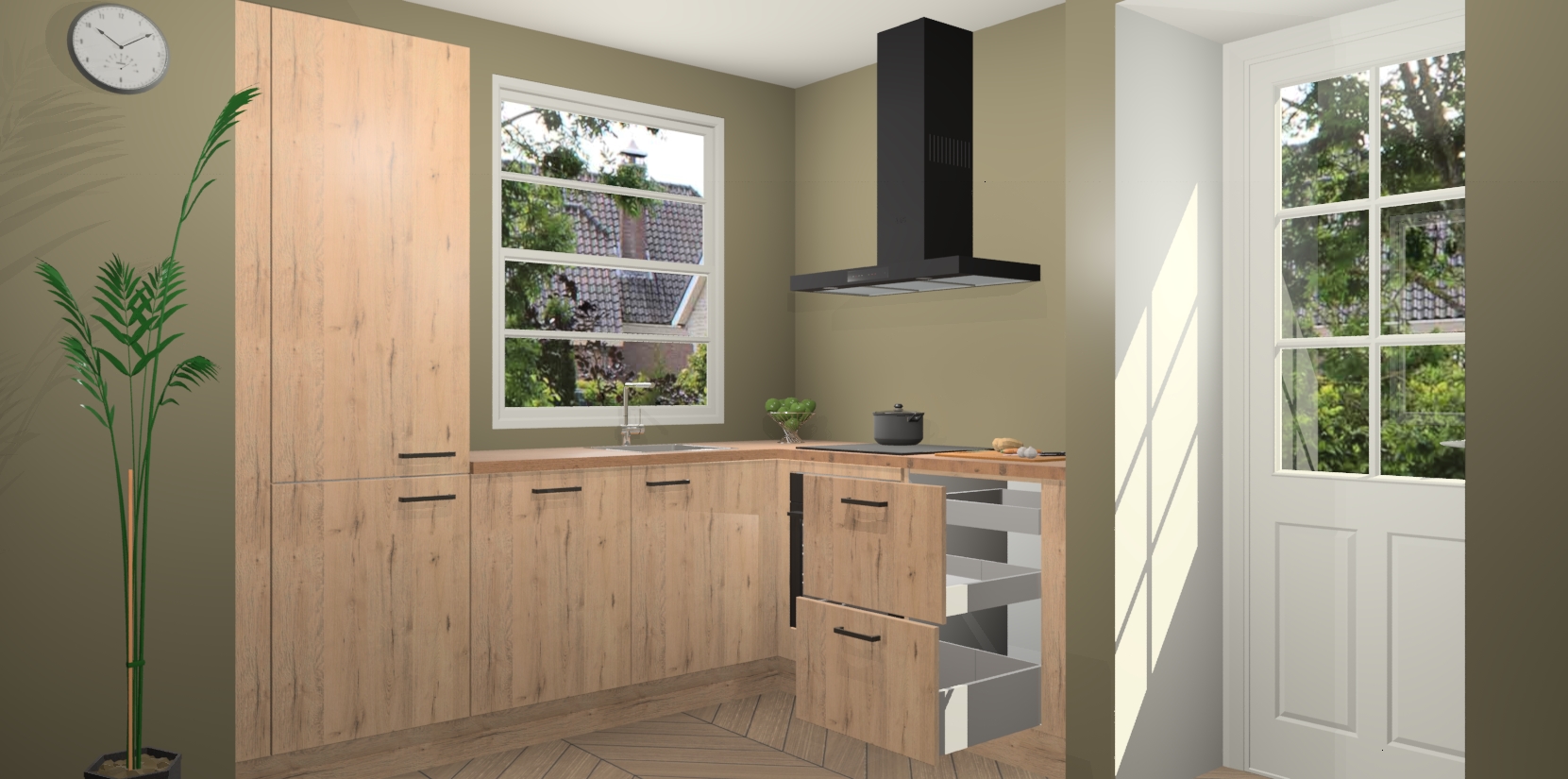 Wilt u een echte aanwinst voor uw keuken, maar bent u op zoek naar iets specialers dan de standaardkeukens? Kies dan voor de Madera Natuur keuken Harbin! Dit prachtige hoekkeukenontwerp geeft u alle ruimte om optimaal te genieten van heerlijk koken. Het uitmuntende afwerkingsniveau, de fraaie houtstructuur en de sfeervolle zwarte grepen maken van de Madera Natuur keuken Harbin de perfecte keuze voor zowel enthousiaste thuiskoks als design-minded interieurliefhebbers.