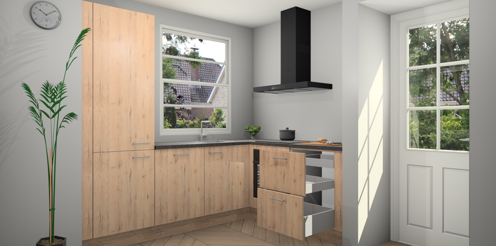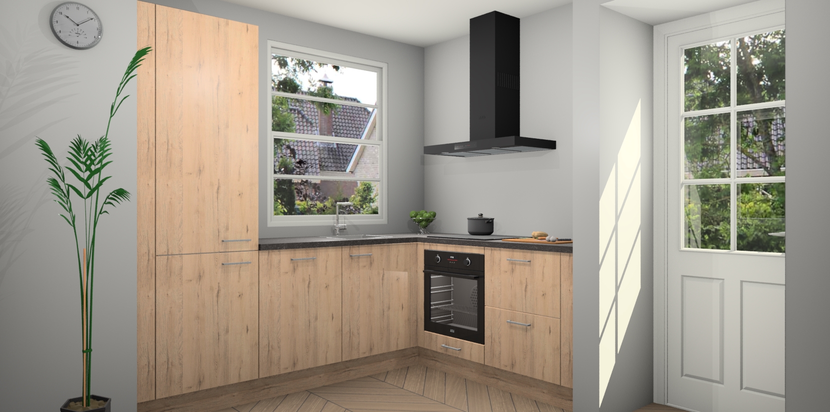 Wilt u een echte aanwinst voor uw keuken, maar bent u op zoek naar iets specialers dan de standaardkeukens? Kies dan voor de Madera Natuur keuken Harbin! Dit prachtige hoekkeukenontwerp geeft u alle ruimte om optimaal te genieten van heerlijk koken. Het uitmuntende afwerkingsniveau, de fraaie houtstructuur en de sfeervolle zwarte grepen maken van de Madera Natuur keuken Harbin de perfecte keuze voor zowel enthousiaste thuiskoks als design-minded interieurliefhebbers.
