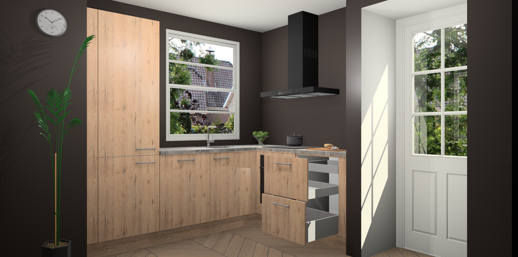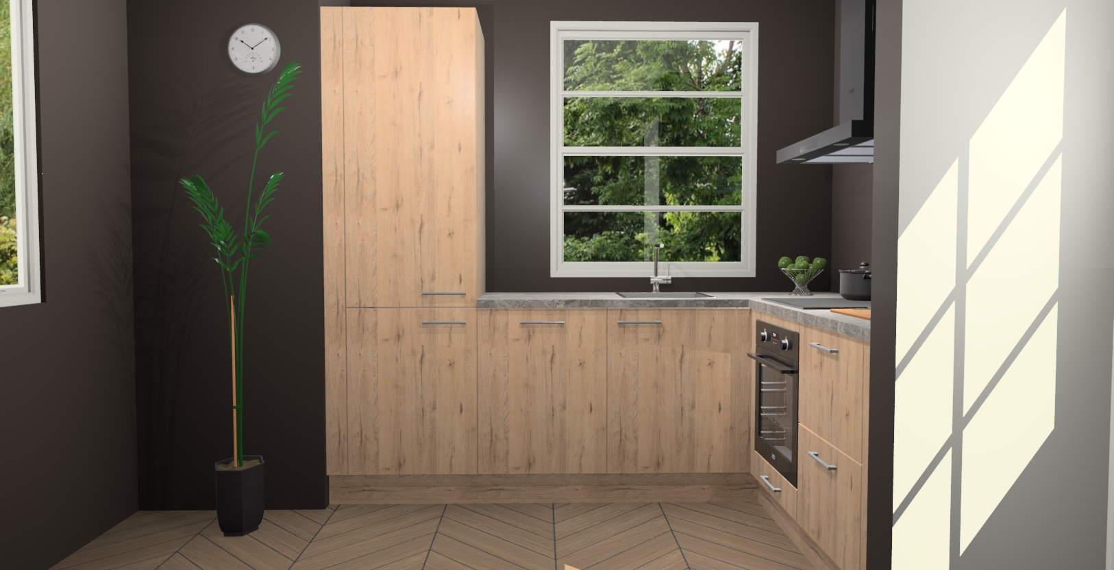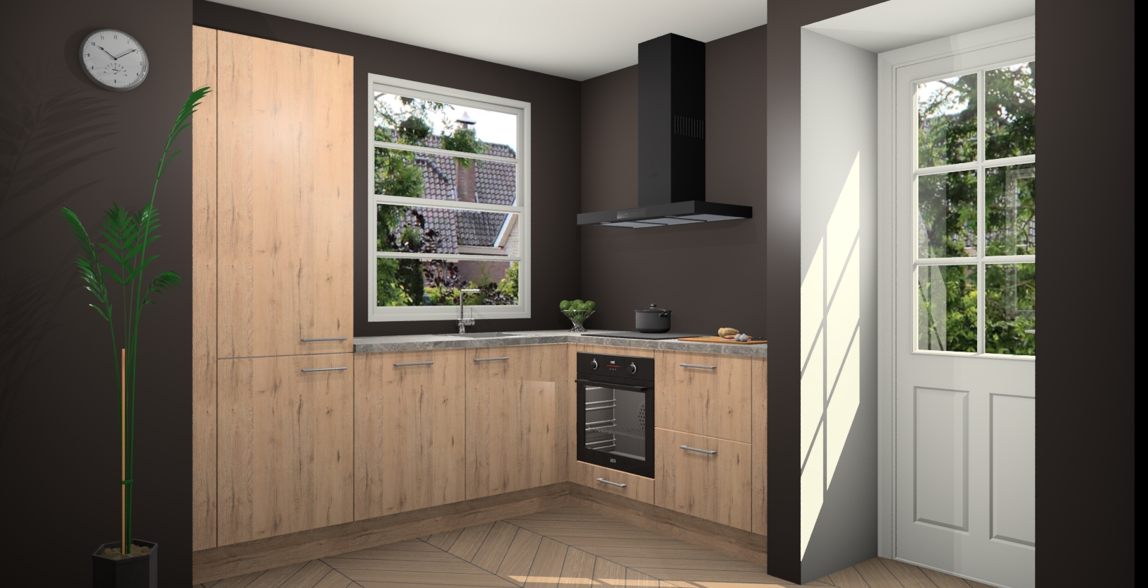 Wilt u een echte aanwinst voor uw keuken, maar bent u op zoek naar iets specialers dan de standaardkeukens? Kies dan voor de Madera Natuur keuken Harbin! Dit prachtige hoekkeukenontwerp geeft u alle ruimte om optimaal te genieten van heerlijk koken. Het uitmuntende afwerkingsniveau, de fraaie houtstructuur en de sfeervolle zwarte grepen maken van de Madera Natuur keuken Harbin de perfecte keuze voor zowel enthousiaste thuiskoks als design-minded interieurliefhebbers.