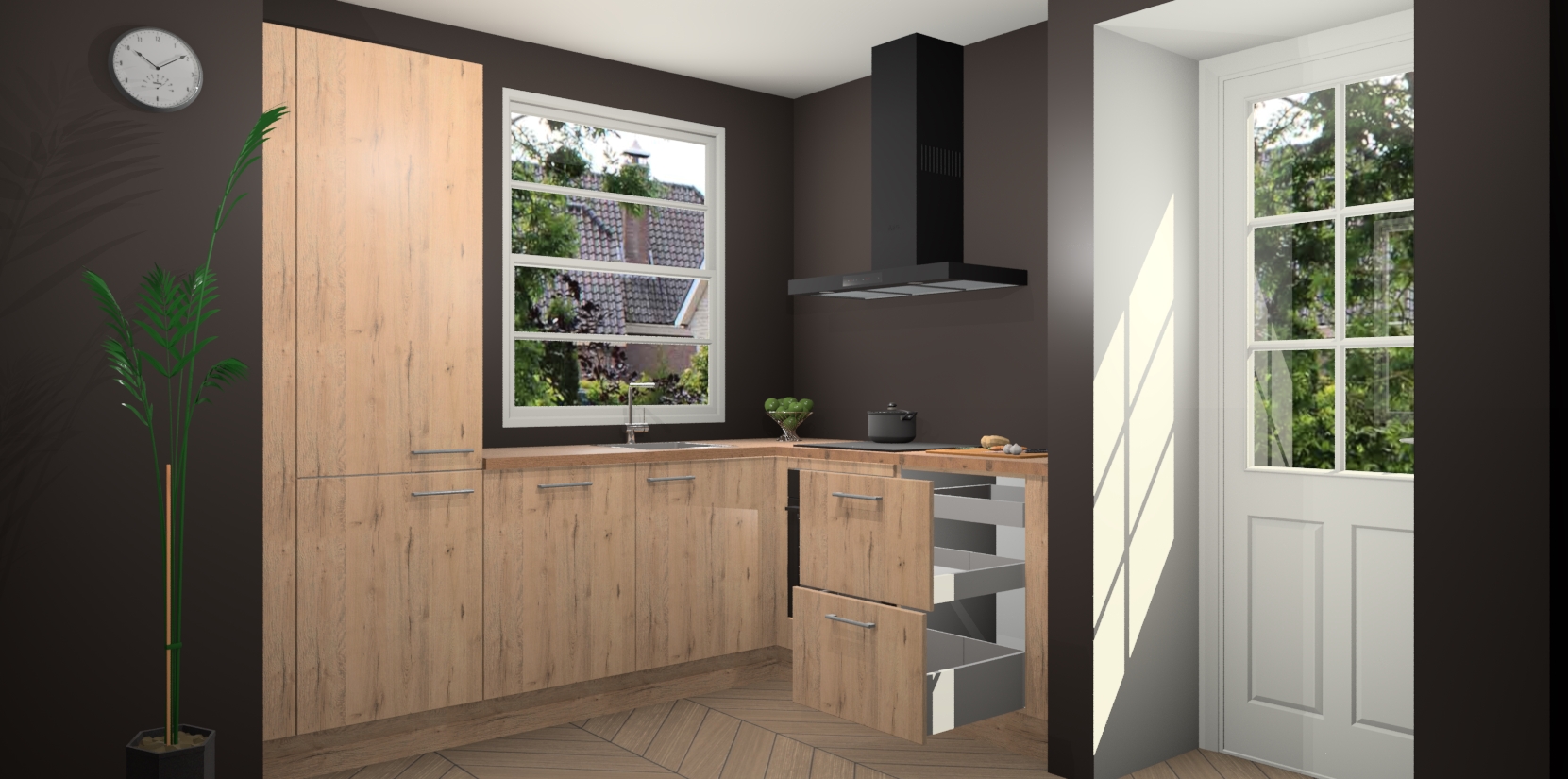 Wilt u een echte aanwinst voor uw keuken, maar bent u op zoek naar iets specialers dan de standaardkeukens? Kies dan voor de Madera Natuur keuken Harbin! Dit prachtige hoekkeukenontwerp geeft u alle ruimte om optimaal te genieten van heerlijk koken. Het uitmuntende afwerkingsniveau, de fraaie houtstructuur en de sfeervolle zwarte grepen maken van de Madera Natuur keuken Harbin de perfecte keuze voor zowel enthousiaste thuiskoks als design-minded interieurliefhebbers.