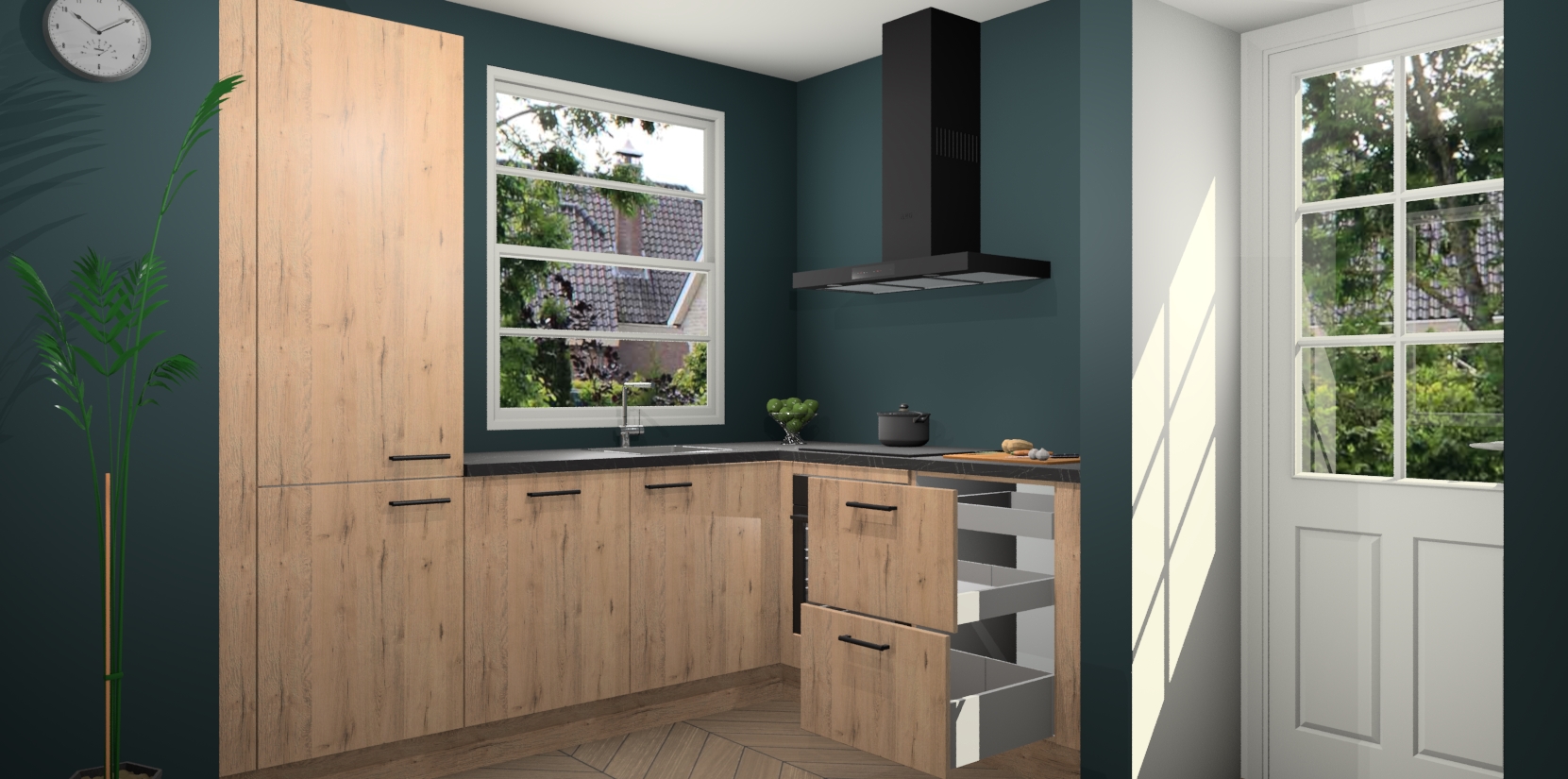 Wilt u een echte aanwinst voor uw keuken, maar bent u op zoek naar iets specialers dan de standaardkeukens? Kies dan voor de Madera Natuur keuken Harbin! Dit prachtige hoekkeukenontwerp geeft u alle ruimte om optimaal te genieten van heerlijk koken. Het uitmuntende afwerkingsniveau, de fraaie houtstructuur en de sfeervolle zwarte grepen maken van de Madera Natuur keuken Harbin de perfecte keuze voor zowel enthousiaste thuiskoks als design-minded interieurliefhebbers.