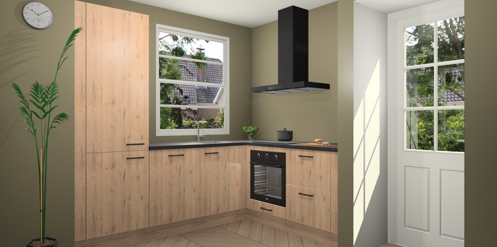 Plus: de Madera Natuur keuken Harbin is kant en klaar voorzien van 5 inbouwapparaten. U krijgt er direct bij: een oven, inductiekookplaat, afzuigkap, vaatwasser én koelkast. En als dat nog niet luxueus genoeg is, heeft u nog de mogelijkheid om de apparaten te upgraden naar AEG of om uw oven te vervangen door een combimagnetron. Ook fijn van voordeel zijn de softclosing-deuren die ervoor zorgen dat u geen geluid hoeft te maken wanneer u weer uw koelkastdeurtjes dichtdoet!