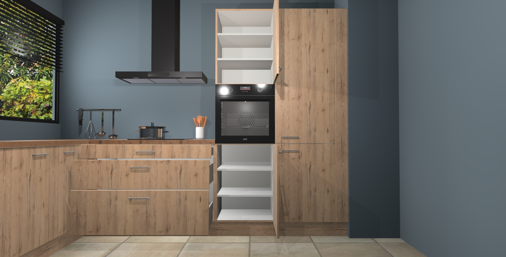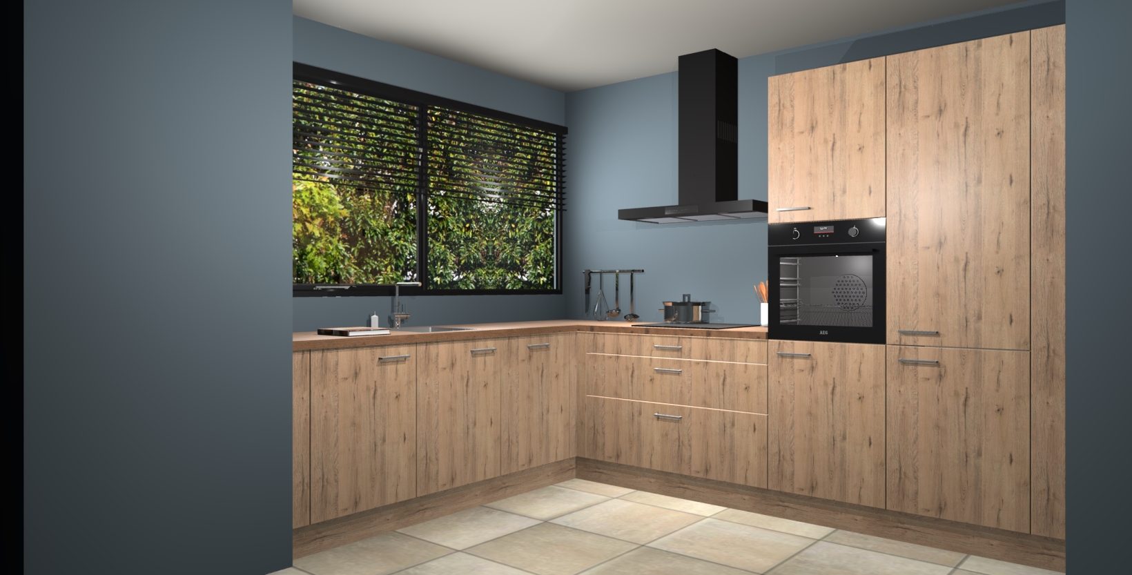 Met een modern, tijdloos design en ruime opslagruimte, zult u zich in no-time thuis voelen in uw nieuwe keuken. Uw leven wordt eenvoudiger met de soft-close deuren die voor het ultieme stille comfort zorgen - geen geluid dat u stoort terwijl u kookt. Ook is de keuken voorzien van 5 ingebouwde apparaten: een oven, inductie kookplaat, afzuigkap, vaatwasser en koelkast. Deze kunnen gemakkelijk na bestelling worden bijgewerkt naar AEG - waardoor uw luxe ervaring compleet is.
