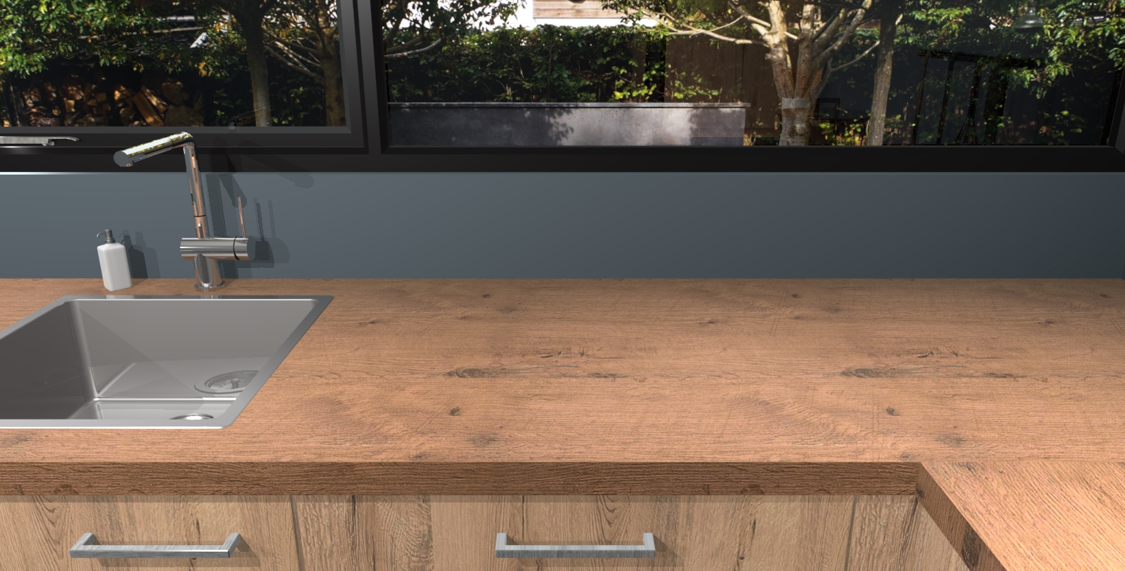 - Bij een hoekwerkblad zijn de hoeken in gevreesd en op maat gemaakt