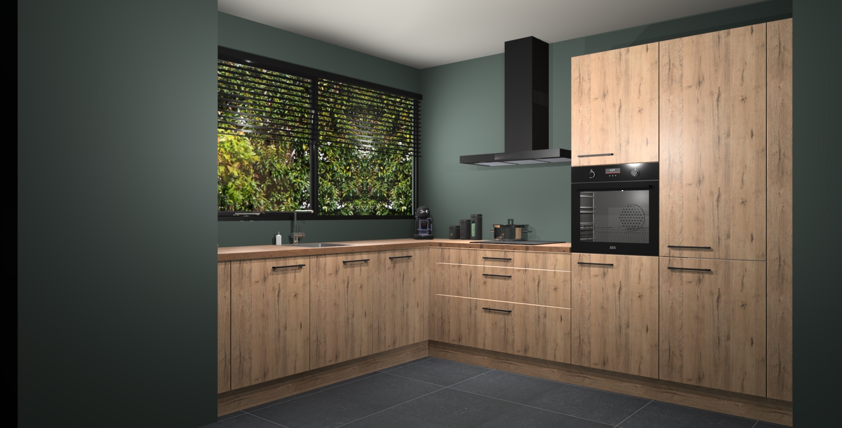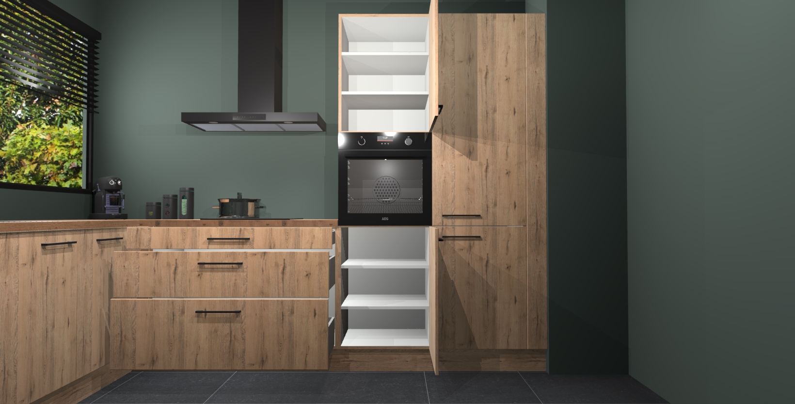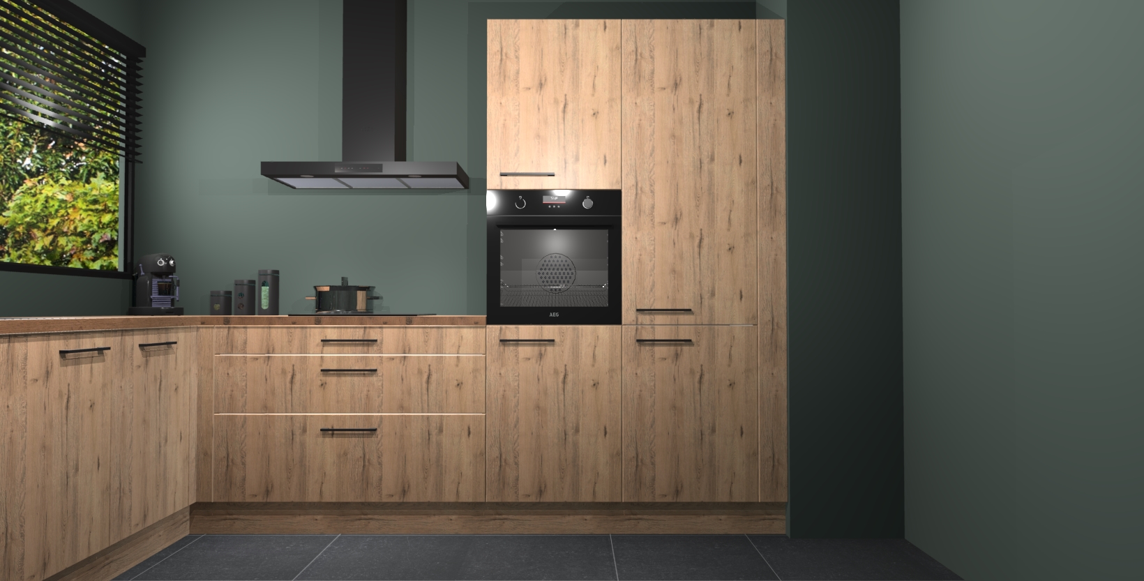 Met een modern, tijdloos design en ruime opslagruimte, zult u zich in no-time thuis voelen in uw nieuwe keuken. Uw leven wordt eenvoudiger met de soft-close deuren die voor het ultieme stille comfort zorgen - geen geluid dat u stoort terwijl u kookt. Ook is de keuken voorzien van 5 ingebouwde apparaten: een oven, inductie kookplaat, afzuigkap, vaatwasser en koelkast. Deze kunnen gemakkelijk na bestelling worden bijgewerkt naar AEG - waardoor uw luxe ervaring compleet is.