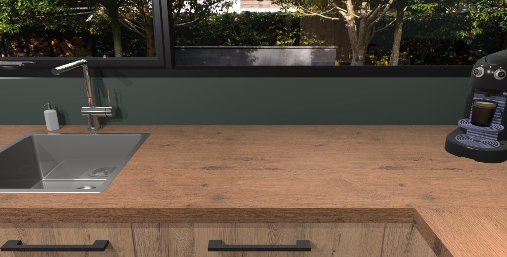 - Bij een hoekwerkblad zijn de hoeken in gevreesd en op maat gemaakt