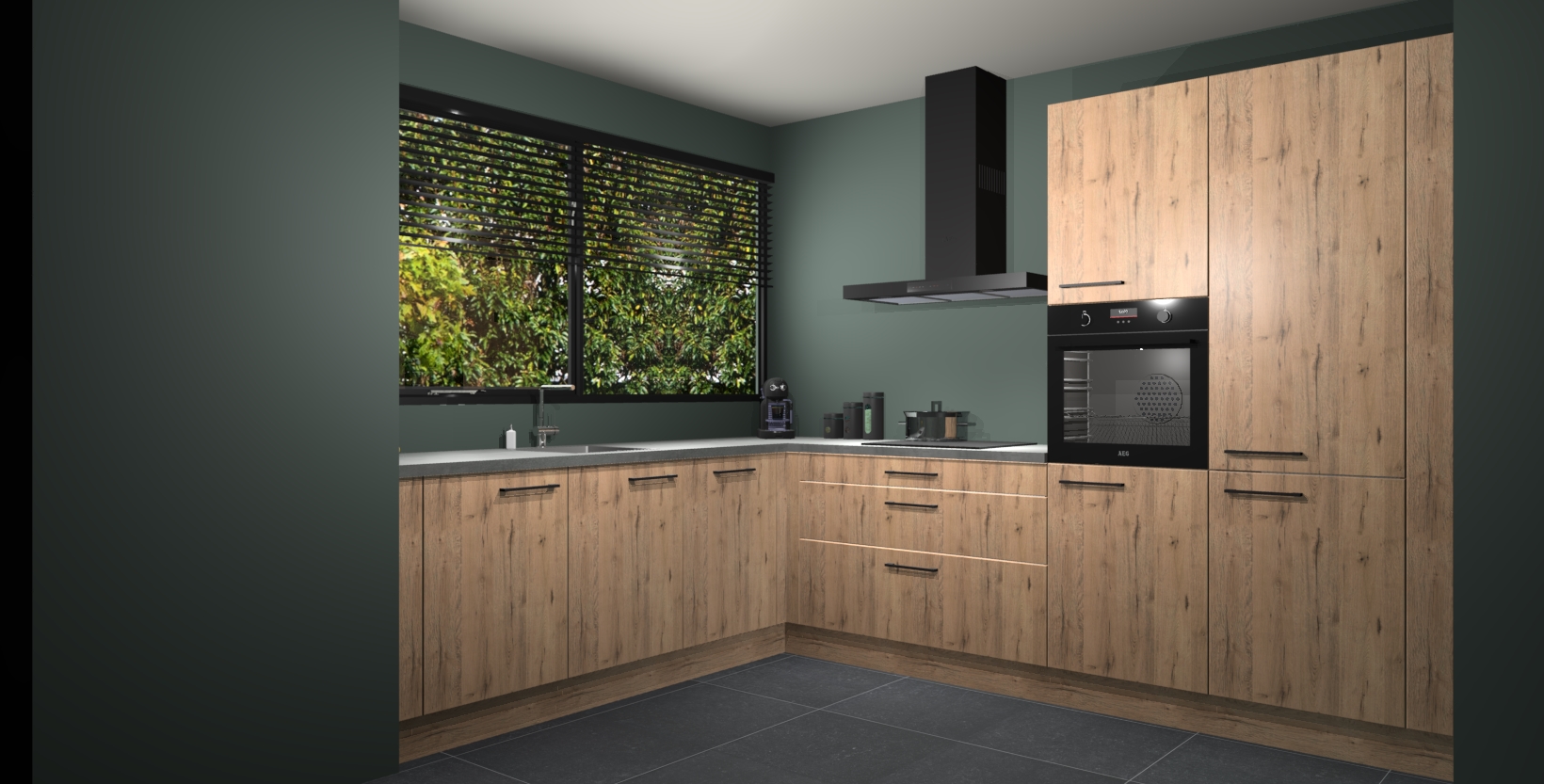 Met een modern, tijdloos design en ruime opslagruimte, zult u zich in no-time thuis voelen in uw nieuwe keuken. Uw leven wordt eenvoudiger met de soft-close deuren die voor het ultieme stille comfort zorgen - geen geluid dat u stoort terwijl u kookt. Ook is de keuken voorzien van 5 ingebouwde apparaten: een oven, inductie kookplaat, afzuigkap, vaatwasser en koelkast. Deze kunnen gemakkelijk na bestelling worden bijgewerkt naar AEG - waardoor uw luxe ervaring compleet is.