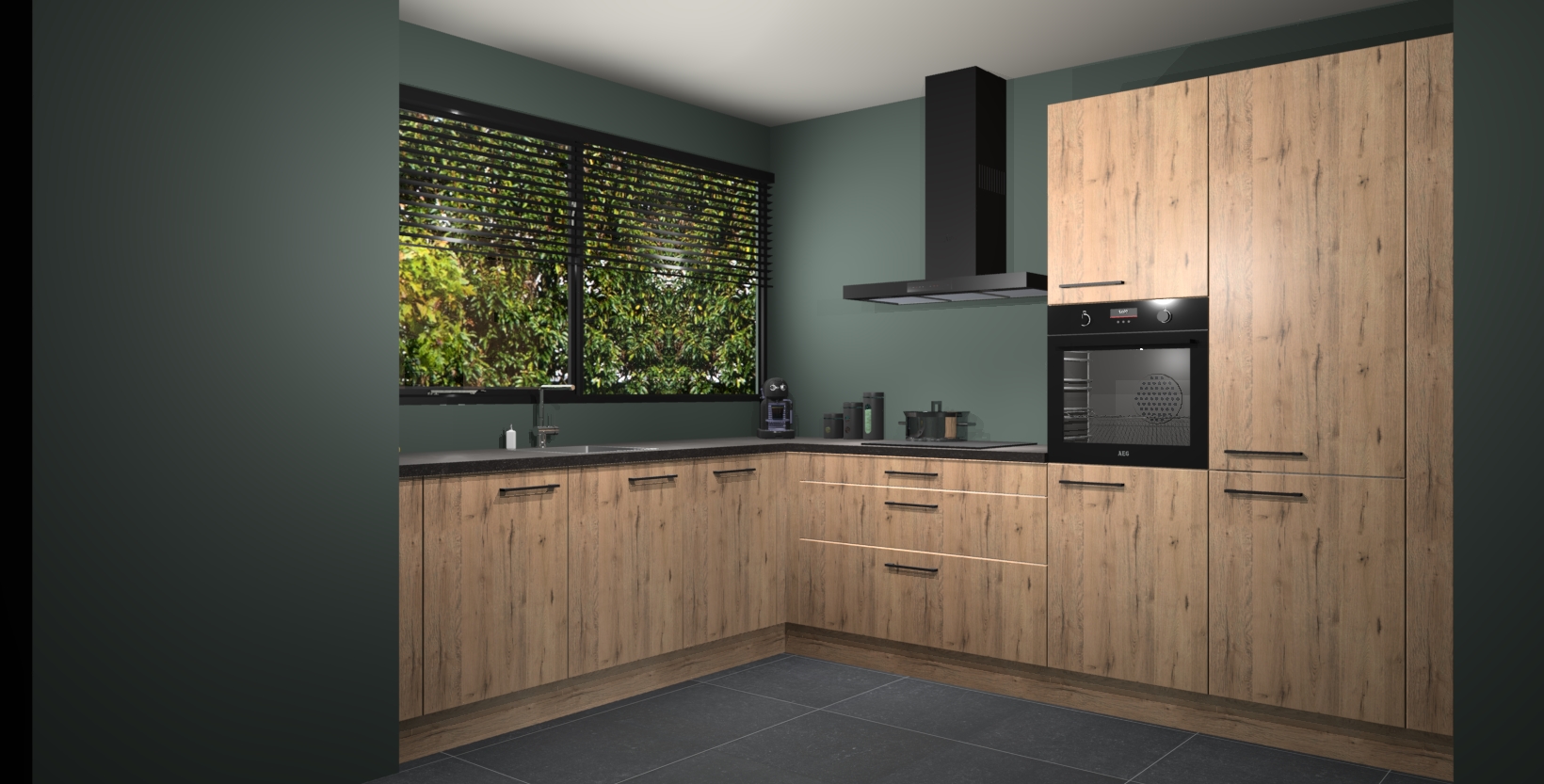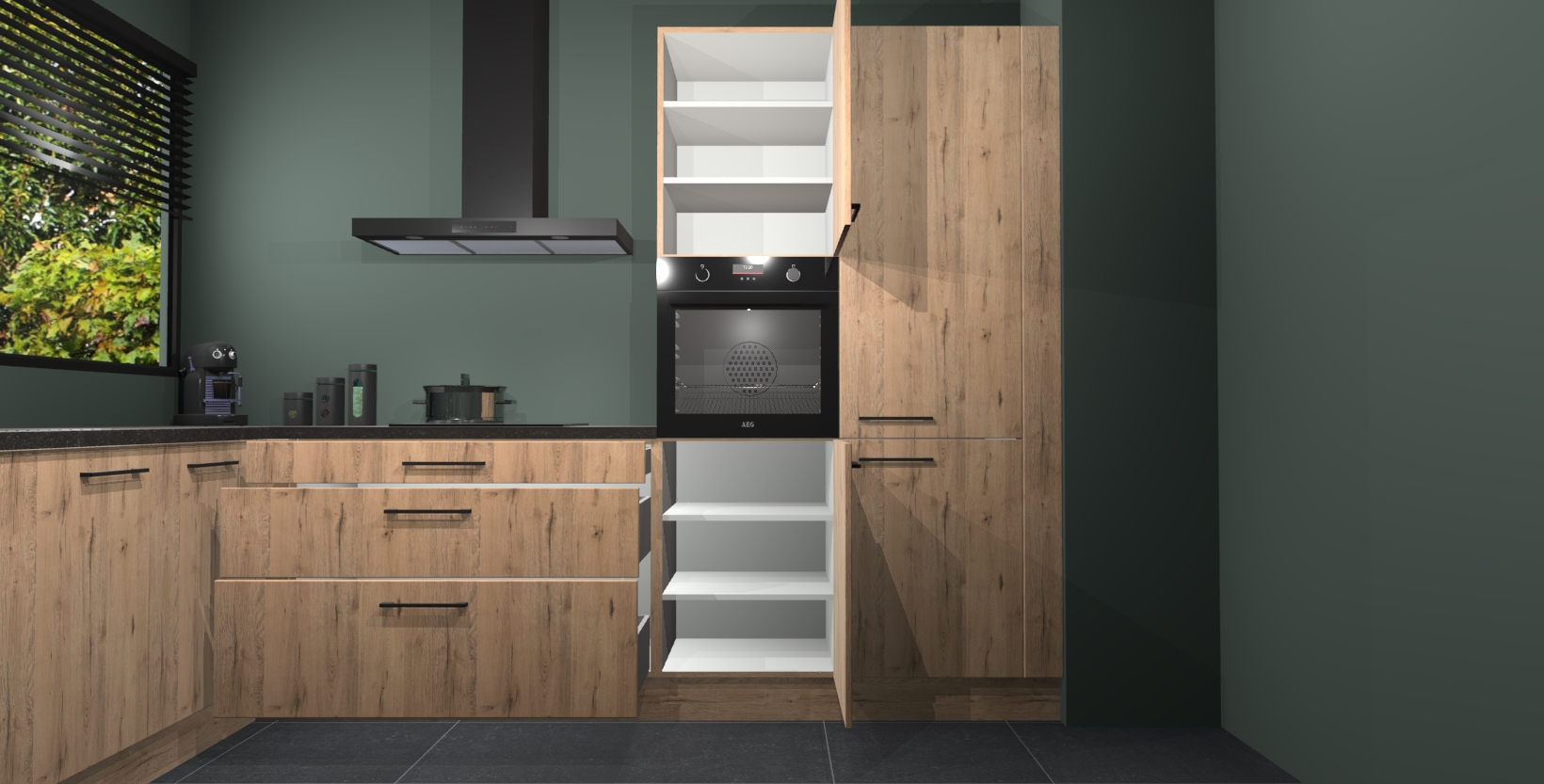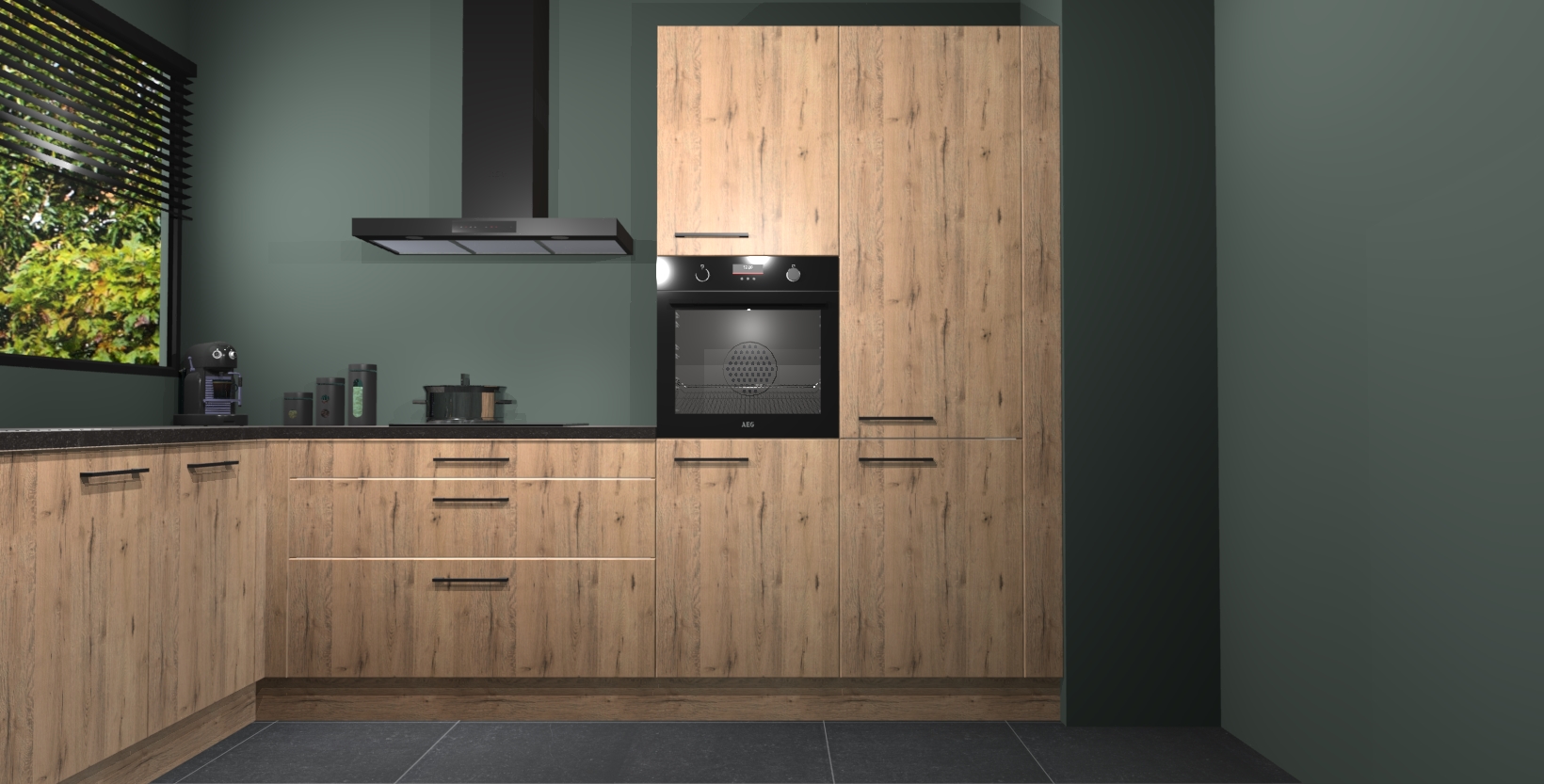 Met een modern, tijdloos design en ruime opslagruimte, zult u zich in no-time thuis voelen in uw nieuwe keuken. Uw leven wordt eenvoudiger met de soft-close deuren die voor het ultieme stille comfort zorgen - geen geluid dat u stoort terwijl u kookt. Ook is de keuken voorzien van 5 ingebouwde apparaten: een oven, inductie kookplaat, afzuigkap, vaatwasser en koelkast. Deze kunnen gemakkelijk na bestelling worden bijgewerkt naar AEG - waardoor uw luxe ervaring compleet is.