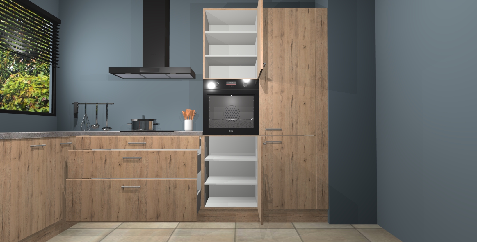 Met een modern, tijdloos design en ruime opslagruimte, zult u zich in no-time thuis voelen in uw nieuwe keuken. Uw leven wordt eenvoudiger met de soft-close deuren die voor het ultieme stille comfort zorgen - geen geluid dat u stoort terwijl u kookt. Ook is de keuken voorzien van 5 ingebouwde apparaten: een oven, inductie kookplaat, afzuigkap, vaatwasser en koelkast. Deze kunnen gemakkelijk na bestelling worden bijgewerkt naar AEG - waardoor uw luxe ervaring compleet is.