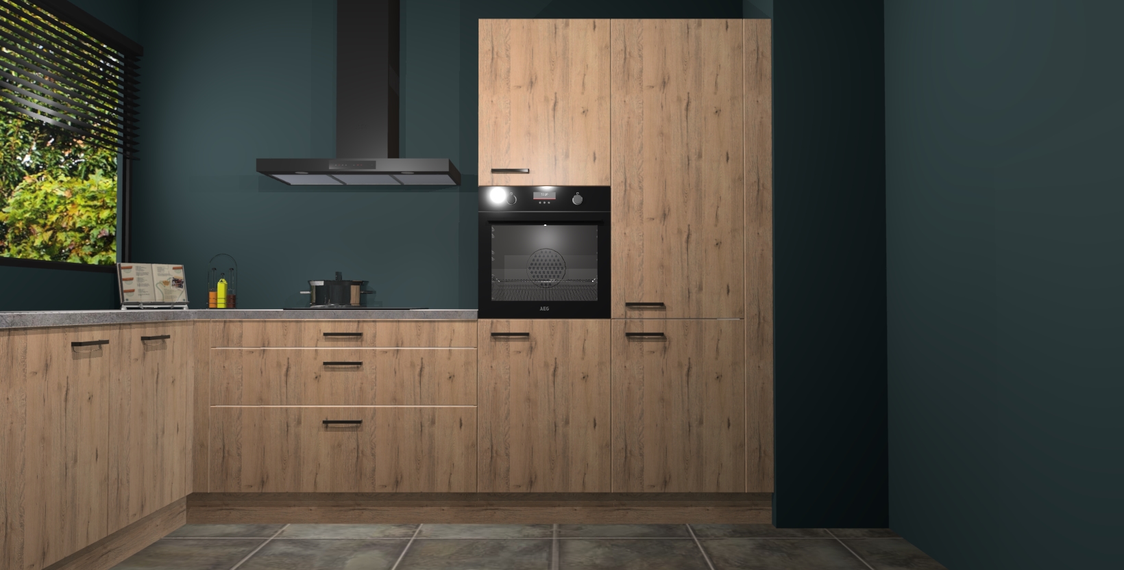 Met een modern, tijdloos design en ruime opslagruimte, zult u zich in no-time thuis voelen in uw nieuwe keuken. Uw leven wordt eenvoudiger met de soft-close deuren die voor het ultieme stille comfort zorgen - geen geluid dat u stoort terwijl u kookt. Ook is de keuken voorzien van 5 ingebouwde apparaten: een oven, inductie kookplaat, afzuigkap, vaatwasser en koelkast. Deze kunnen gemakkelijk na bestelling worden bijgewerkt naar AEG - waardoor uw luxe ervaring compleet is.