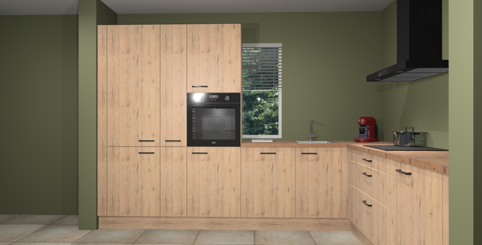 Met een modern, tijdloos design en ruime opslagruimte, zult u zich in no-time thuis voelen in uw nieuwe keuken. Uw leven wordt eenvoudiger met de soft-close deuren die voor het ultieme stille comfort zorgen - geen geluid dat u stoort terwijl u kookt. Ook is de keuken voorzien van 5 ingebouwde apparaten: een oven, inductie kookplaat, afzuigkap, vaatwasser en koelkast. Deze kunnen gemakkelijk na bestelling worden bijgewerkt naar AEG - waardoor uw luxe ervaring compleet is.