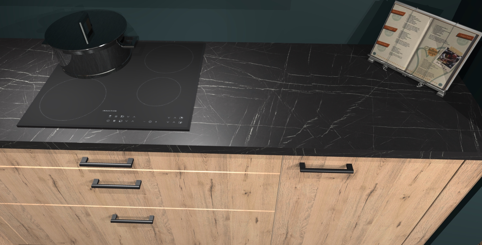 - Bij een hoekwerkblad zijn de hoeken in gevreesd en op maat gemaakt