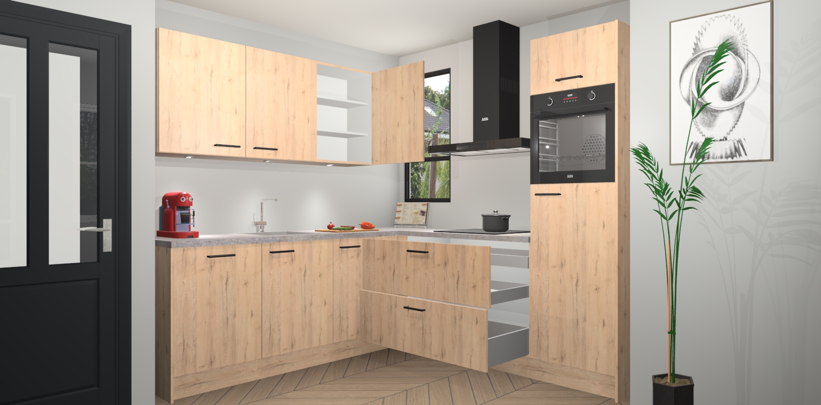 Als extra werd de prijs zo laag mogelijk vastgesteld, zonder aan de kwaliteit te raken. Zo heb je gegarandeerde Duitse keukenkwaliteit waarmee je jarenlang plezier beleeft aan het ontwerp. En dat alles wordt gecombineerd met een supersnelle service van maar liefst 7 weken!