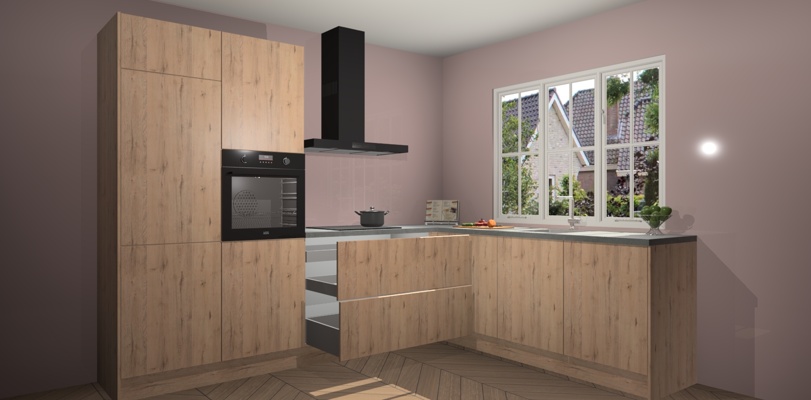 Heeft u genoeg van dezelfde keukenontwerpen die de markt overspoelen? Dan is de Madera Natuur keuken Kazan de juiste keuze voor u! Deze prachtige hoekkeuken heeft een modern en tijdloos design dat een elegant tintje geeft aan uw ruimte.