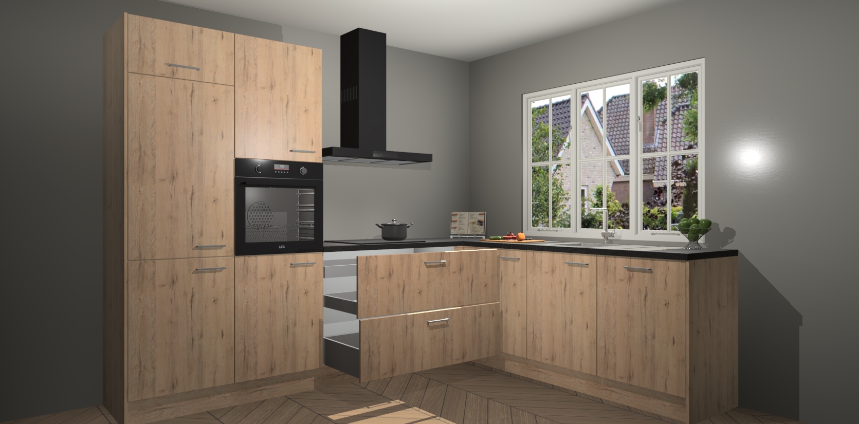 Inclusief plinten, stelpoten en werkblad