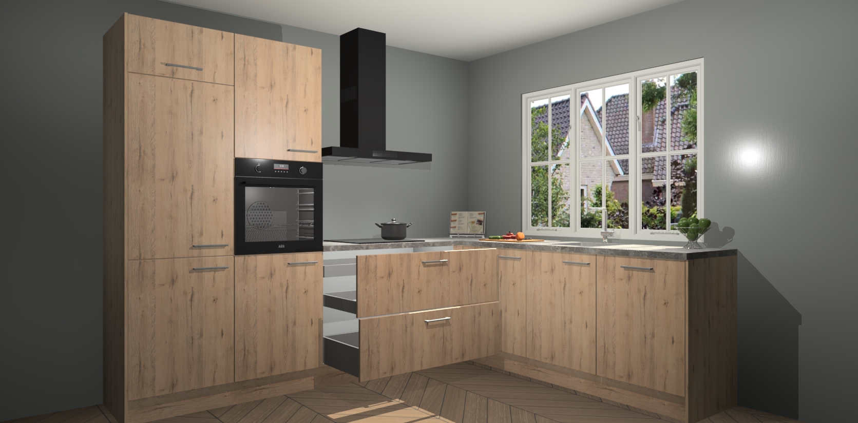 Inclusief plinten, stelpoten en werkblad