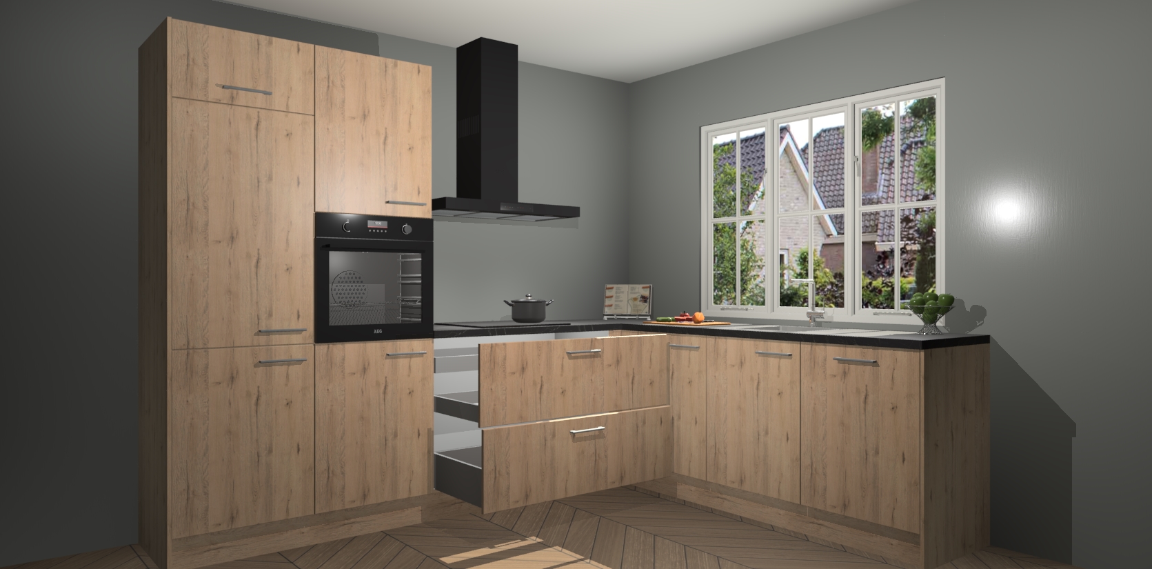 Inclusief plinten, stelpoten en werkblad