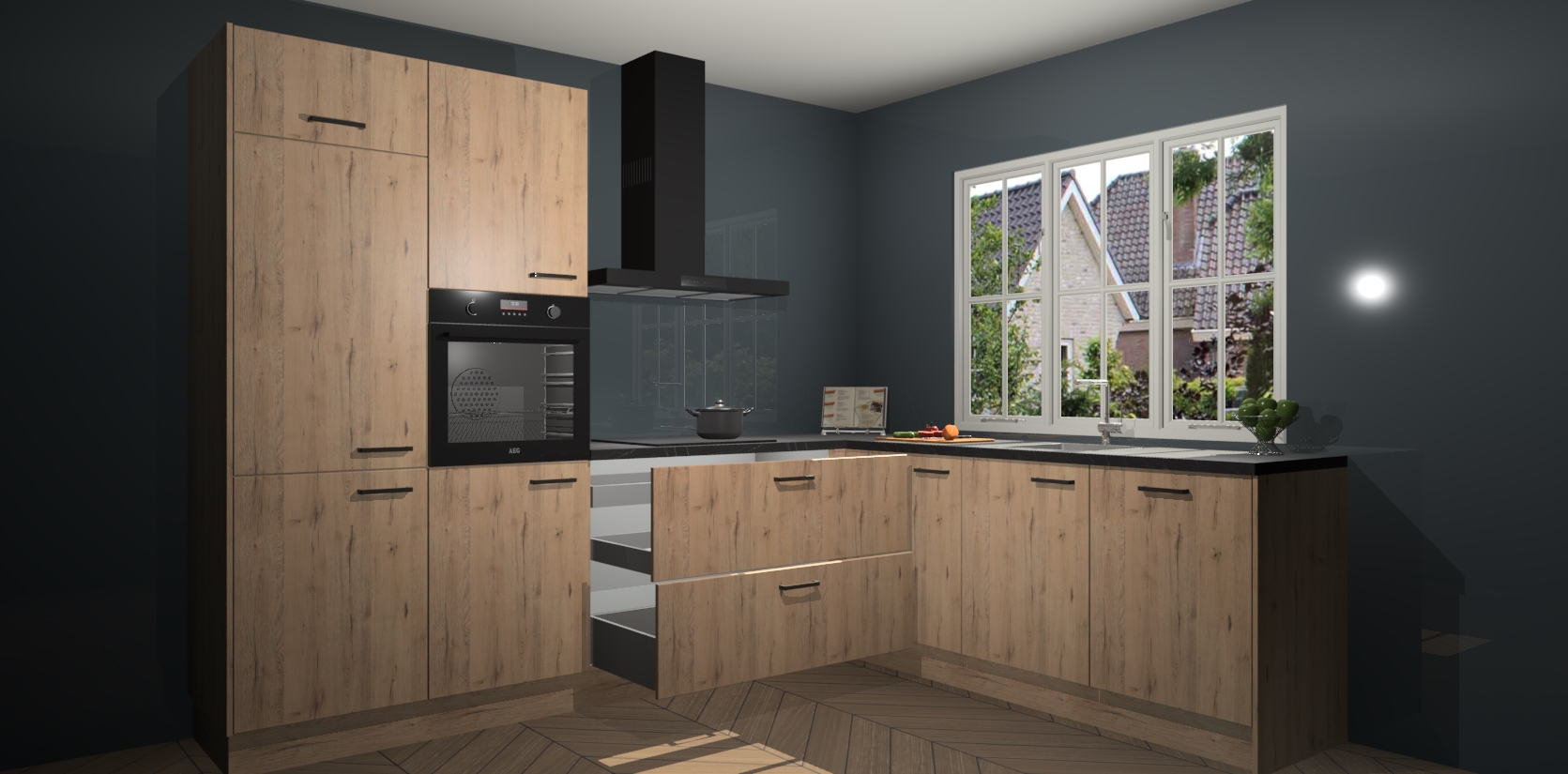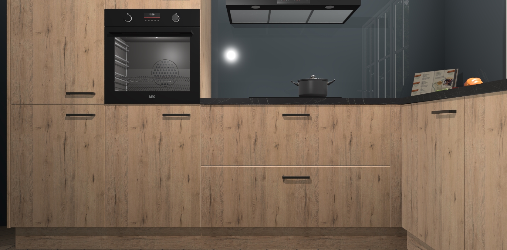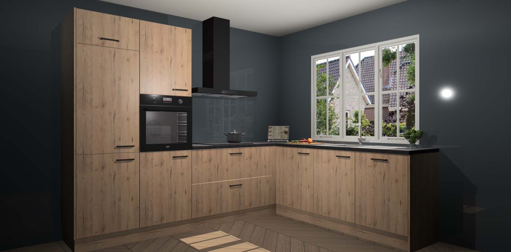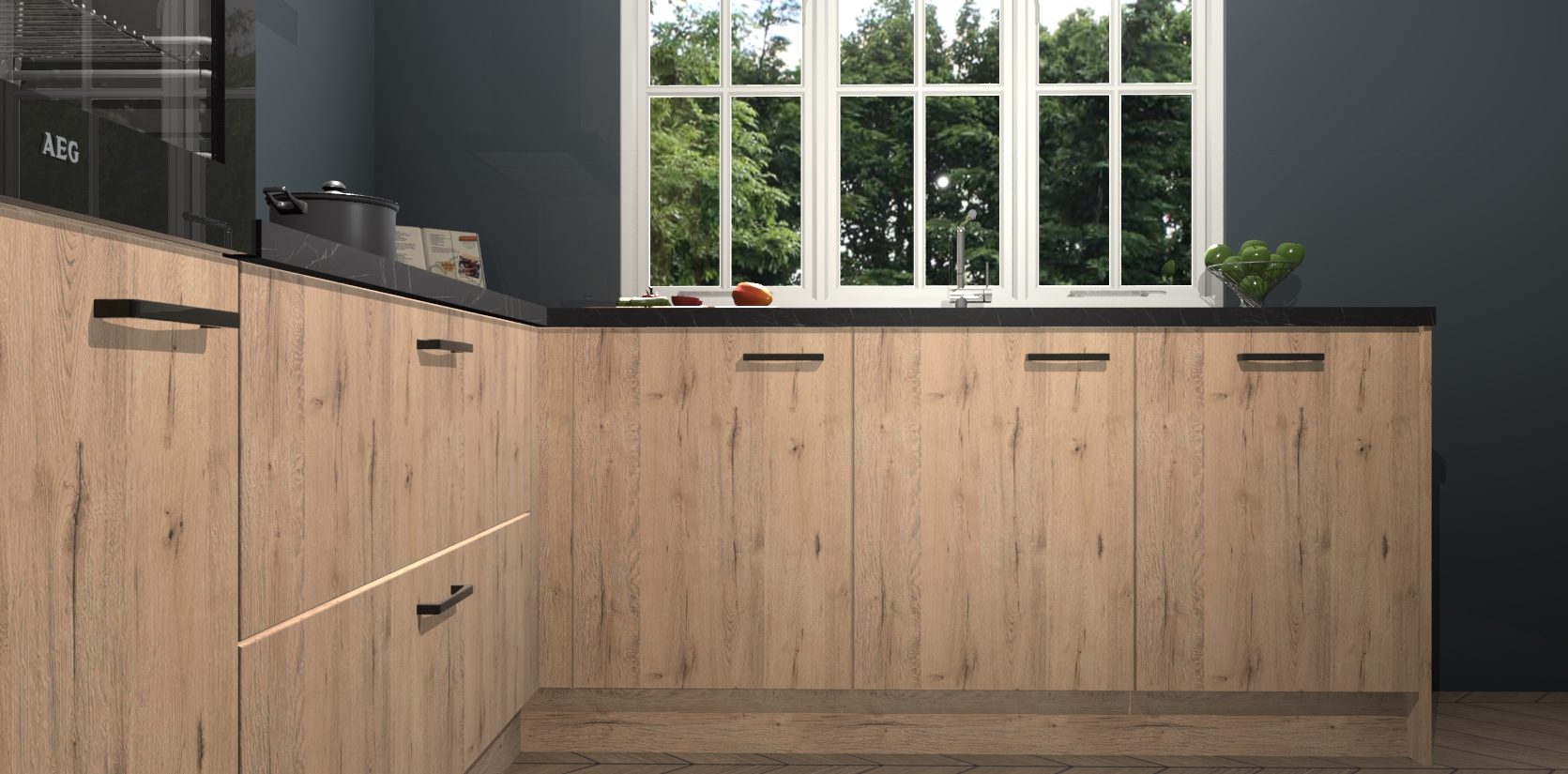Heeft u genoeg van dezelfde keukenontwerpen die de markt overspoelen? Dan is de Madera Natuur keuken Kazan de juiste keuze voor u! Deze prachtige hoekkeuken heeft een modern en tijdloos design dat een elegant tintje geeft aan uw ruimte.