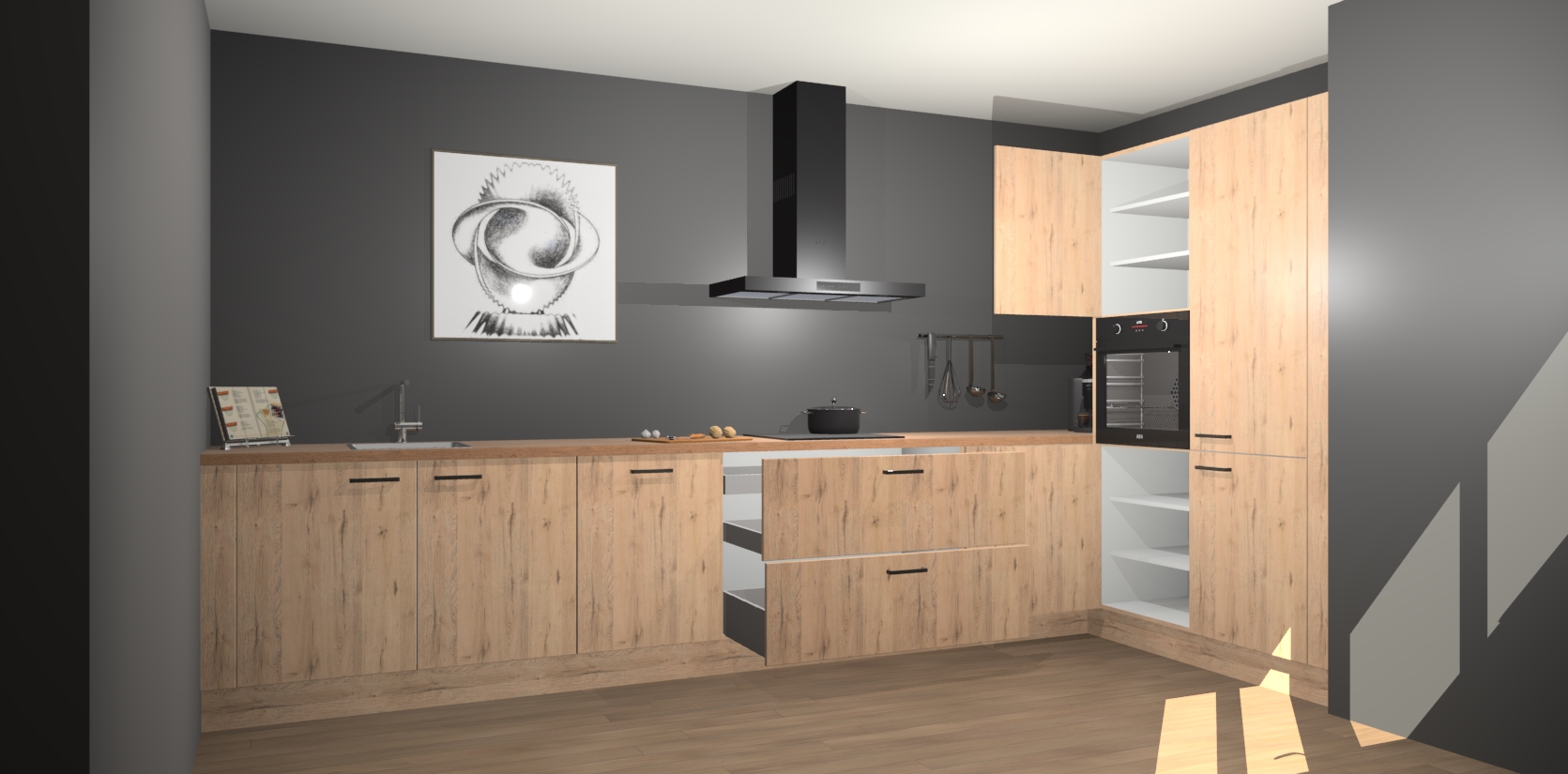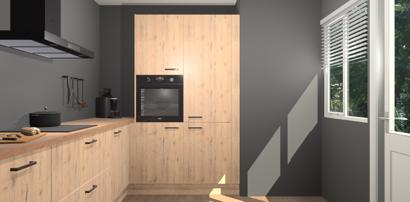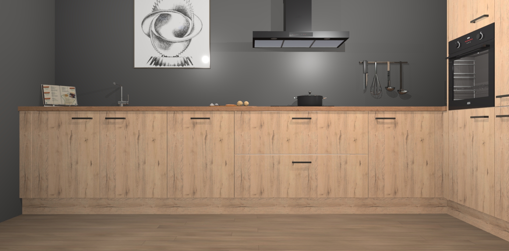Welkom bij de Madera Natuur keuken Khao Lak. Deze prachtige keuken zal de komende jaren het middelpunt van de belangstelling in uw huis zijn. Uitgerust met vijf inbouwapparaten komt u nooit kookgereedschap tekort. Bovendien geeft de warme houtlook elke ruimte een uitnodigende en tijdloze uitstraling.