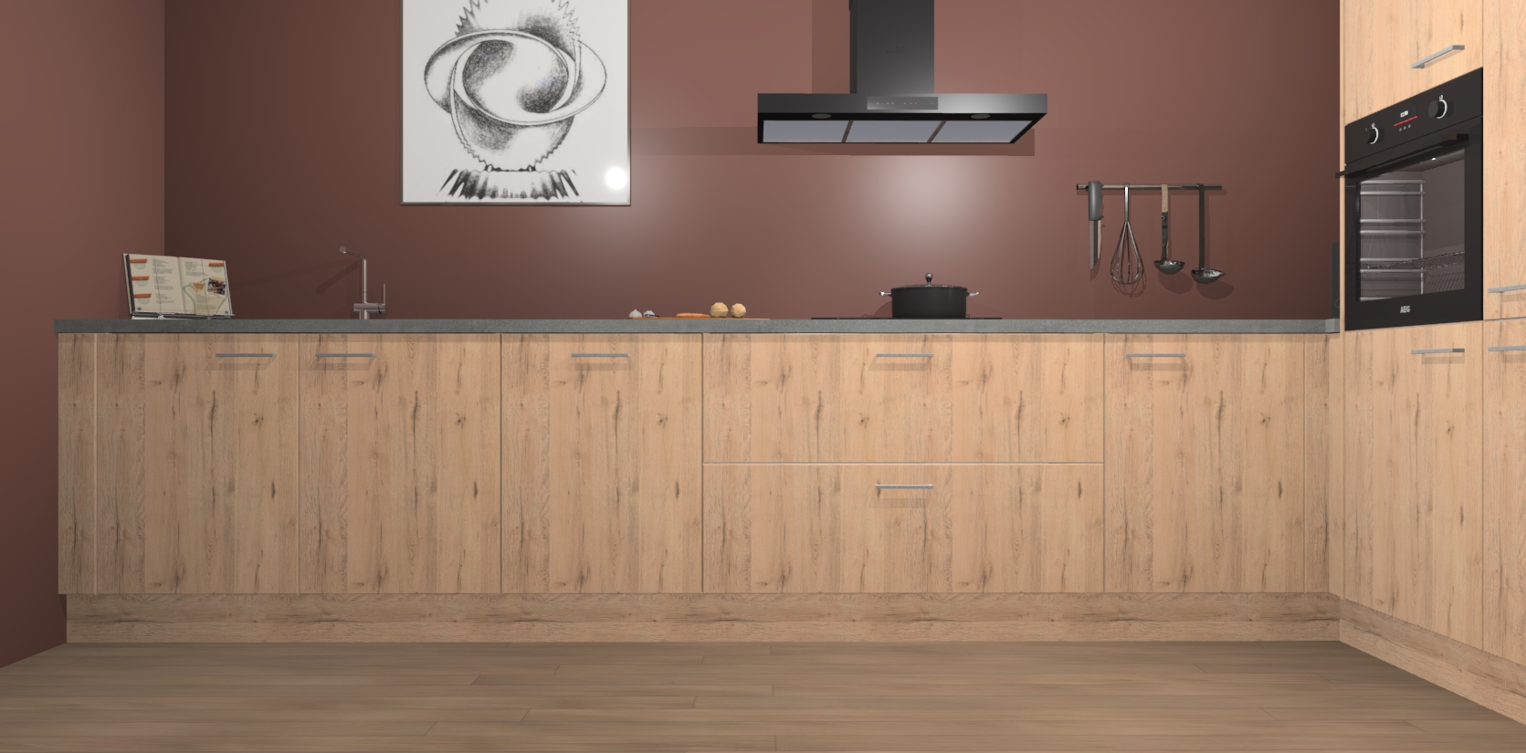 Welkom bij de Madera Natuur keuken Khao Lak. Deze prachtige keuken zal de komende jaren het middelpunt van de belangstelling in uw huis zijn. Uitgerust met vijf inbouwapparaten komt u nooit kookgereedschap tekort. Bovendien geeft de warme houtlook elke ruimte een uitnodigende en tijdloze uitstraling.