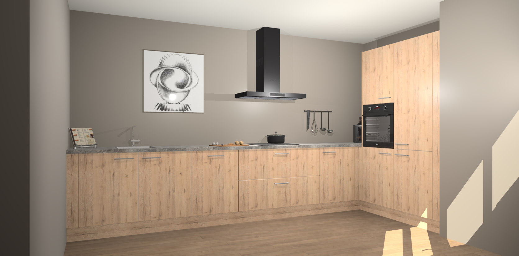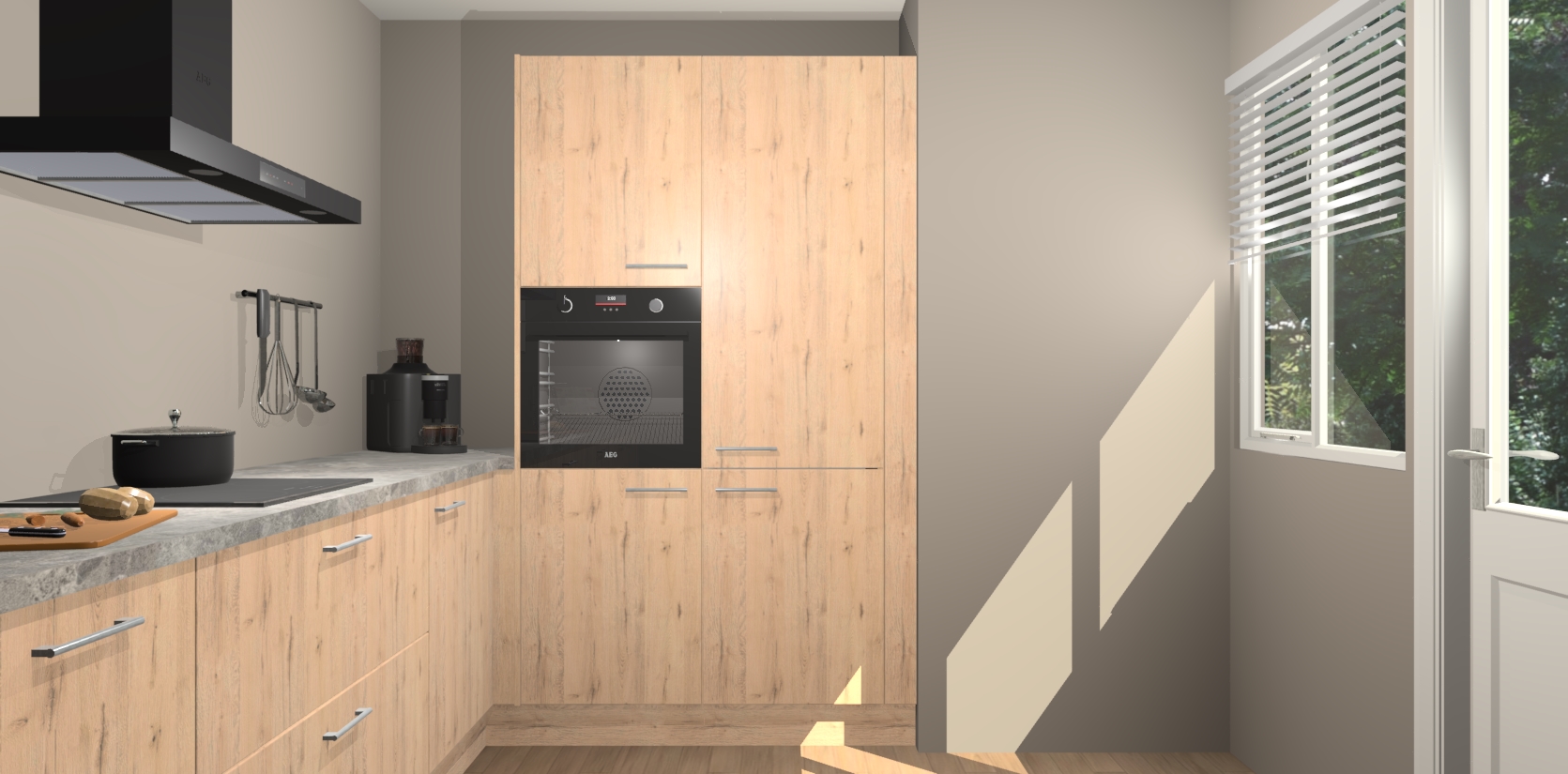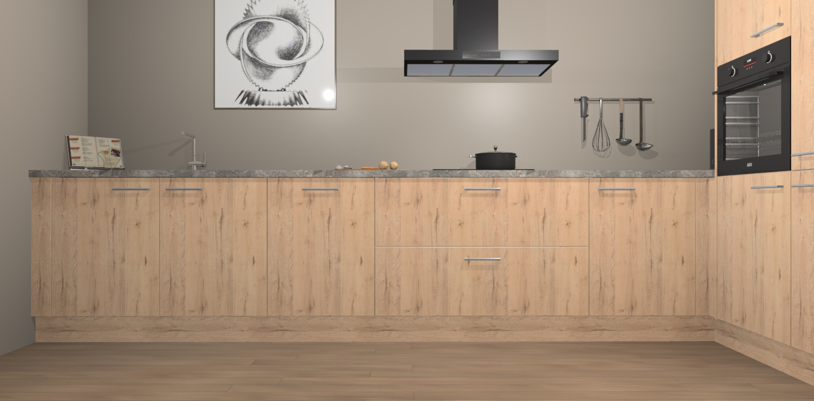 Welkom bij de Madera Natuur keuken Khao Lak. Deze prachtige keuken zal de komende jaren het middelpunt van de belangstelling in uw huis zijn. Uitgerust met vijf inbouwapparaten komt u nooit kookgereedschap tekort. Bovendien geeft de warme houtlook elke ruimte een uitnodigende en tijdloze uitstraling.