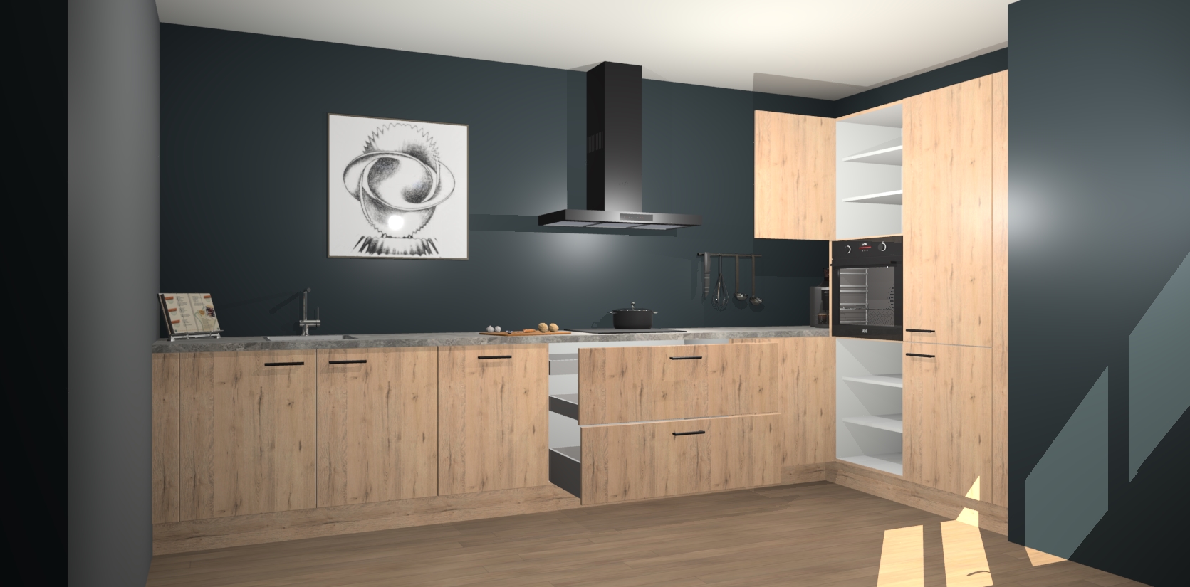 Welkom bij de Madera Natuur keuken Khao Lak. Deze prachtige keuken zal de komende jaren het middelpunt van de belangstelling in uw huis zijn. Uitgerust met vijf inbouwapparaten komt u nooit kookgereedschap tekort. Bovendien geeft de warme houtlook elke ruimte een uitnodigende en tijdloze uitstraling.