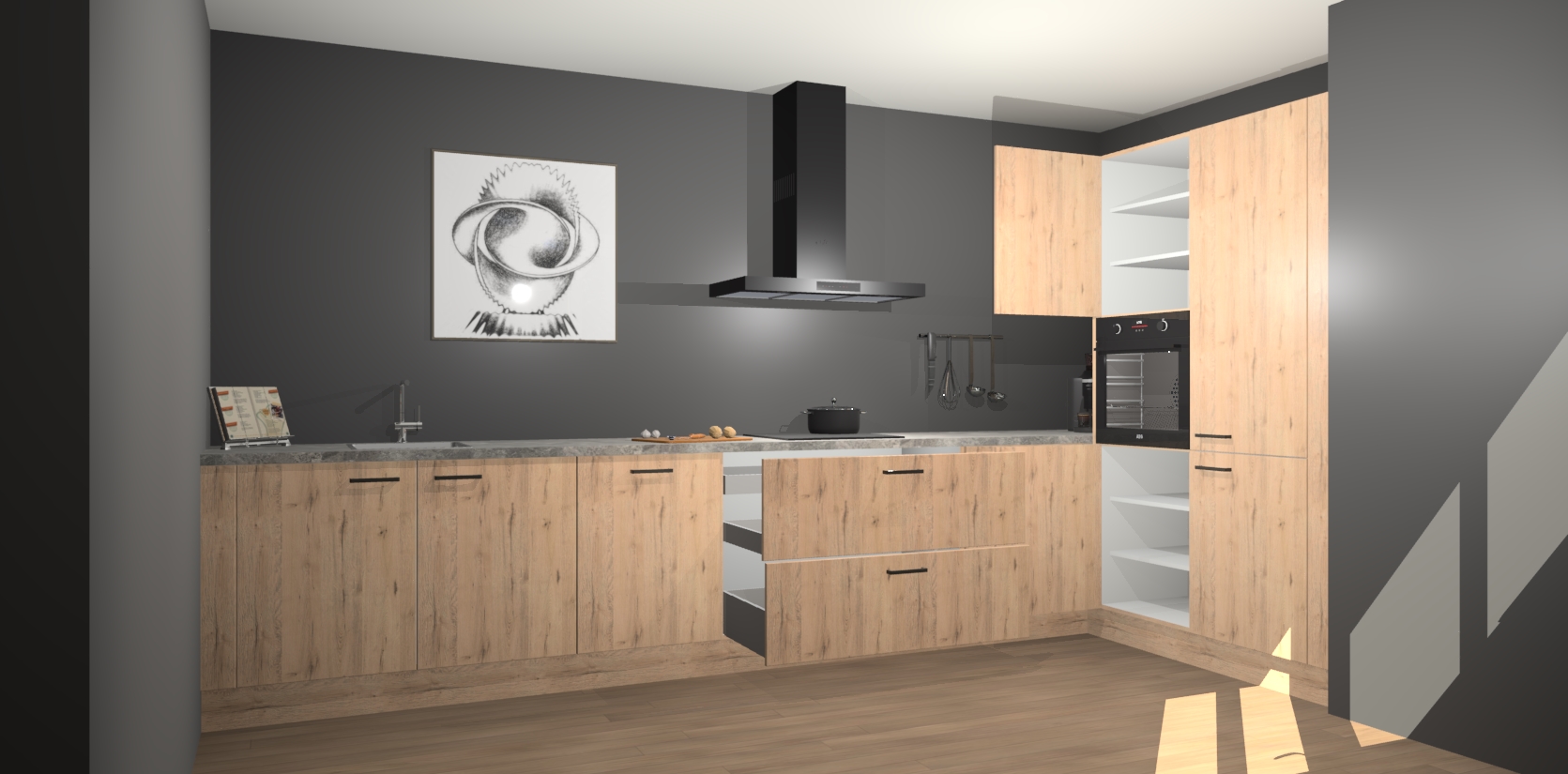 Welkom bij de Madera Natuur keuken Khao Lak. Deze prachtige keuken zal de komende jaren het middelpunt van de belangstelling in uw huis zijn. Uitgerust met vijf inbouwapparaten komt u nooit kookgereedschap tekort. Bovendien geeft de warme houtlook elke ruimte een uitnodigende en tijdloze uitstraling.