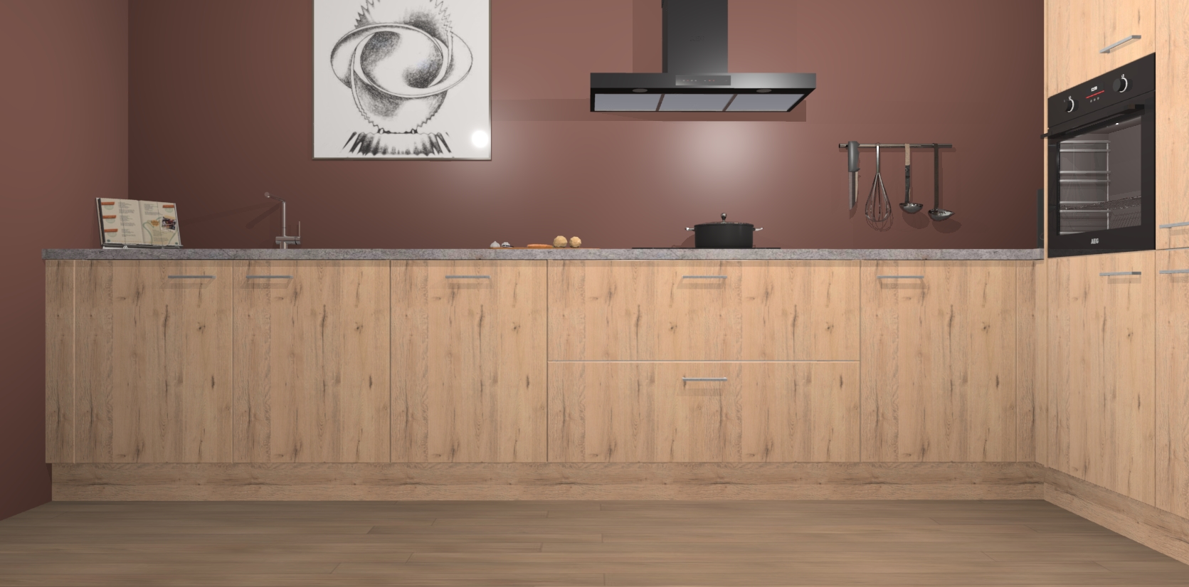 Welkom bij de Madera Natuur keuken Khao Lak. Deze prachtige keuken zal de komende jaren het middelpunt van de belangstelling in uw huis zijn. Uitgerust met vijf inbouwapparaten komt u nooit kookgereedschap tekort. Bovendien geeft de warme houtlook elke ruimte een uitnodigende en tijdloze uitstraling.