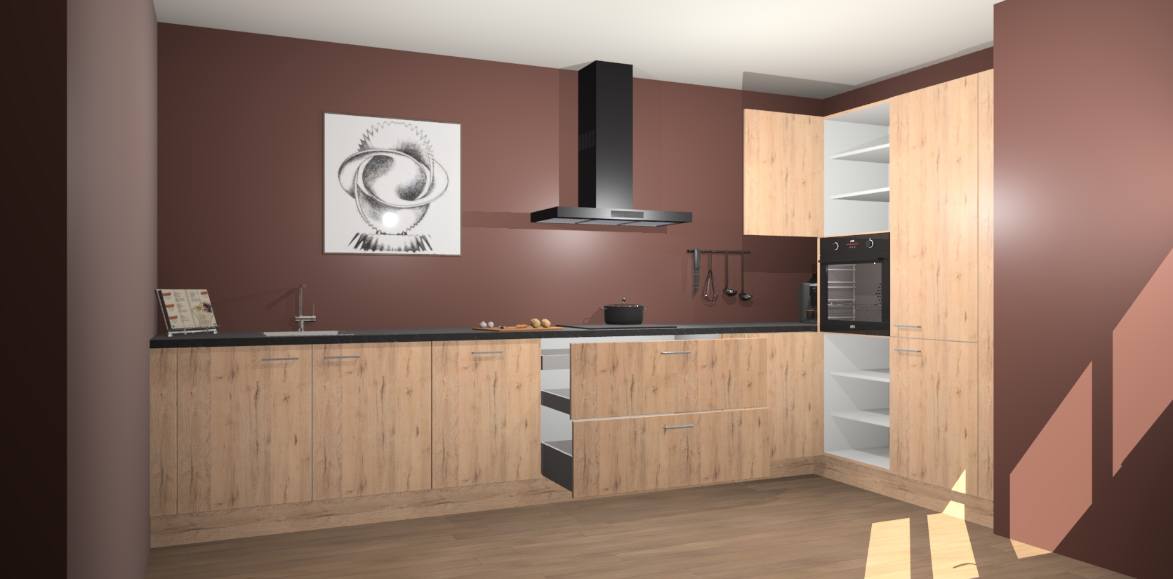 Welkom bij de Madera Natuur keuken Khao Lak. Deze prachtige keuken zal de komende jaren het middelpunt van de belangstelling in uw huis zijn. Uitgerust met vijf inbouwapparaten komt u nooit kookgereedschap tekort. Bovendien geeft de warme houtlook elke ruimte een uitnodigende en tijdloze uitstraling.