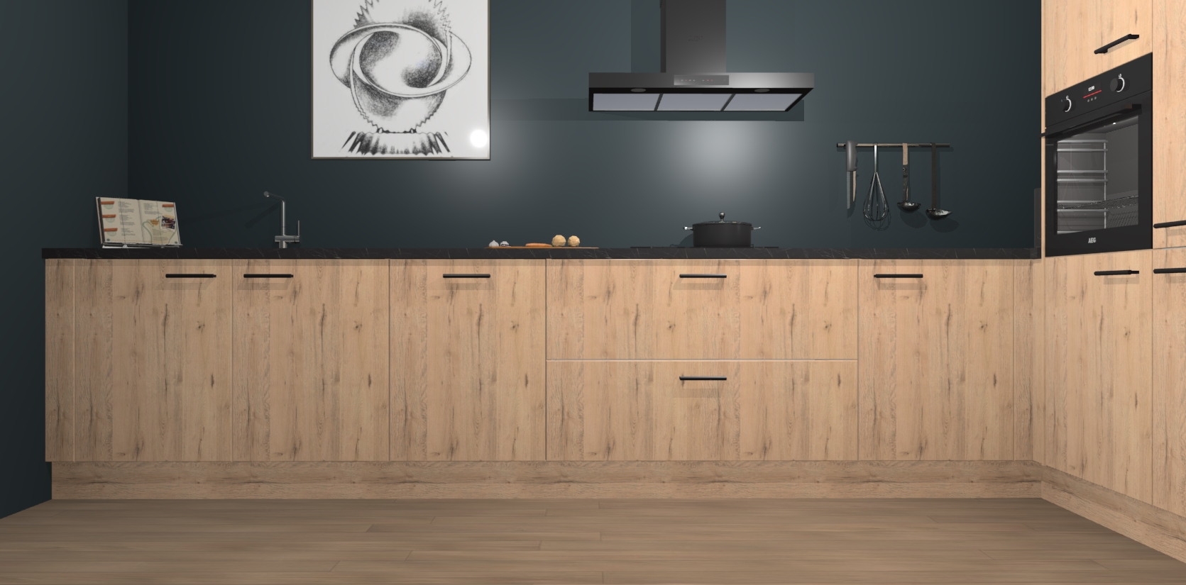 Welkom bij de Madera Natuur keuken Khao Lak. Deze prachtige keuken zal de komende jaren het middelpunt van de belangstelling in uw huis zijn. Uitgerust met vijf inbouwapparaten komt u nooit kookgereedschap tekort. Bovendien geeft de warme houtlook elke ruimte een uitnodigende en tijdloze uitstraling.