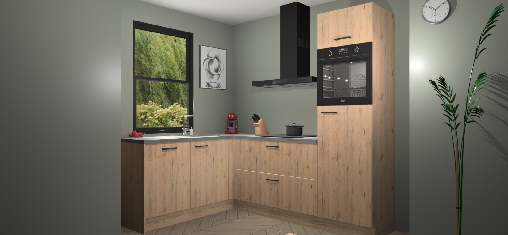Deze prachtige hoekkeuken heeft alle benodigdheden om uw droomkook- en eetruimte compleet te maken. De Madera Natuur kasten bieden een echo van raffinement, terwijl de 5 inbouwapparaten genoeg opties bieden voor het bereiden van heerlijke maaltijden. De oven, inductiekookplaat, afzuigkap, vaatwasser en koelkast zorgen ervoor dat u tijd in de keuken zo efficiënt mogelijk verloopt, terwijl ze ook dat extra vleugje luxe bieden.