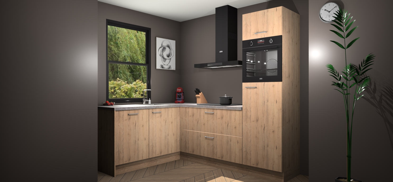 Deze prachtige hoekkeuken heeft alle benodigdheden om uw droomkook- en eetruimte compleet te maken. De Madera Natuur kasten bieden een echo van raffinement, terwijl de 5 inbouwapparaten genoeg opties bieden voor het bereiden van heerlijke maaltijden. De oven, inductiekookplaat, afzuigkap, vaatwasser en koelkast zorgen ervoor dat u tijd in de keuken zo efficiënt mogelijk verloopt, terwijl ze ook dat extra vleugje luxe bieden.