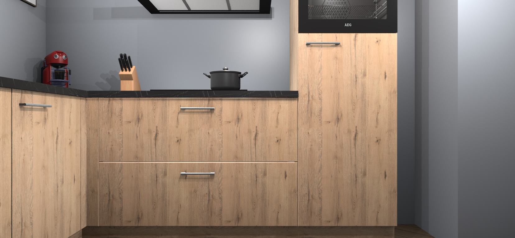 Deze prachtige hoekkeuken heeft alle benodigdheden om uw droomkook- en eetruimte compleet te maken. De Madera Natuur kasten bieden een echo van raffinement, terwijl de 5 inbouwapparaten genoeg opties bieden voor het bereiden van heerlijke maaltijden. De oven, inductiekookplaat, afzuigkap, vaatwasser en koelkast zorgen ervoor dat u tijd in de keuken zo efficiënt mogelijk verloopt, terwijl ze ook dat extra vleugje luxe bieden.