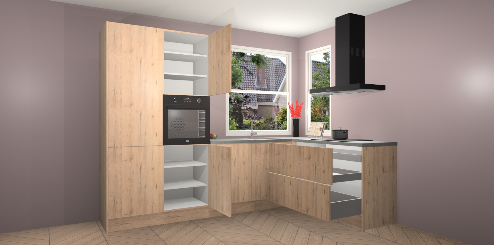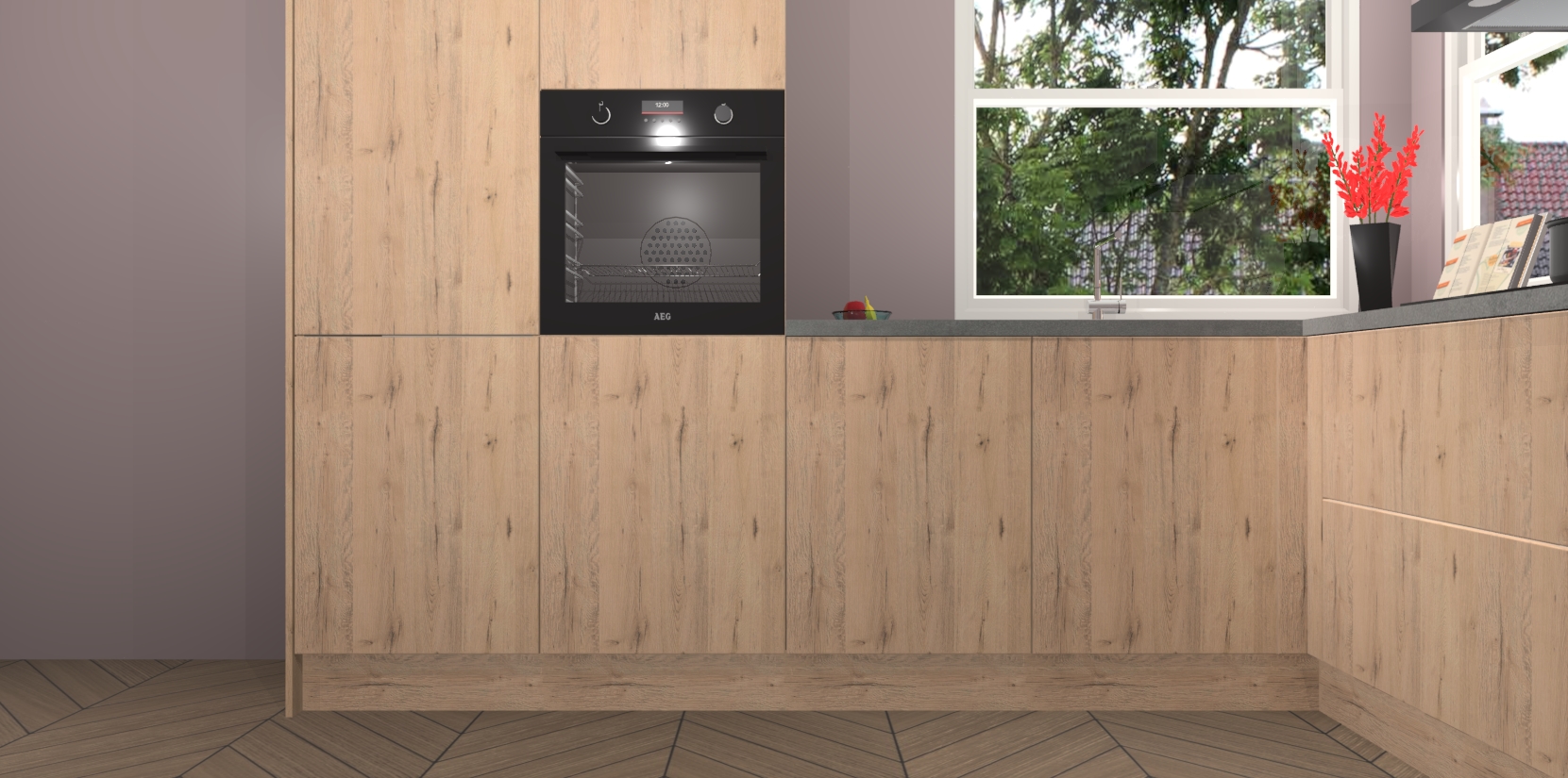 Elke Madera Natuur keuken Kotor wordt compleet geleverd met vijf inbouwapparaten, waaronder een oven, inductiekookplaat, afzuigkap, vaatwasser en koelkast. Sterker nog - indien gewenst kunt u deze apparaten na bestelling eenvoudig upgraden naar AEG! Extra functies zijn onder andere soft close deuren voor extra gemak, en elke kast wordt voor gemonteerd geleverd zodat u sneller van uw nieuwe keuken kunt genieten.