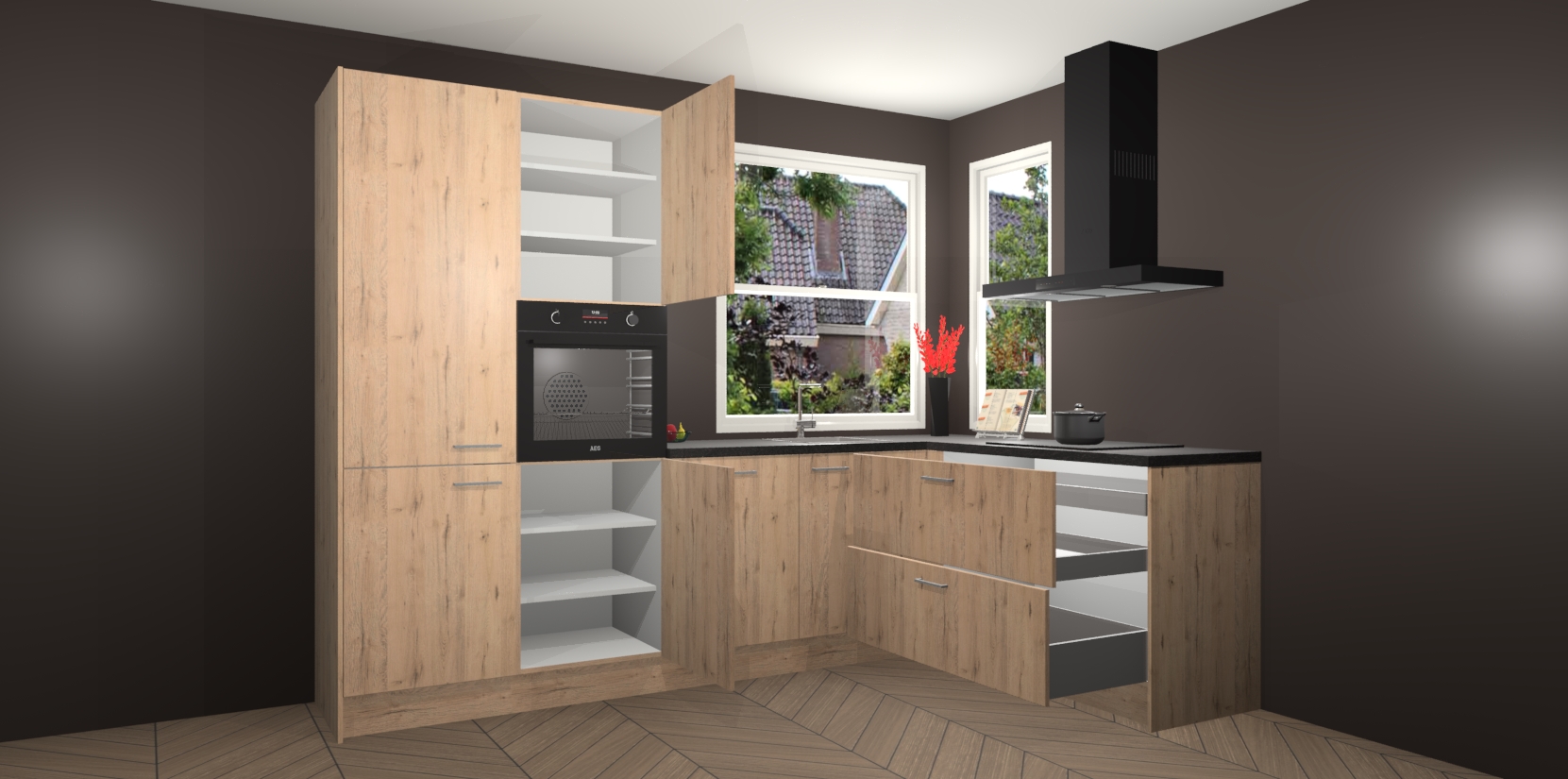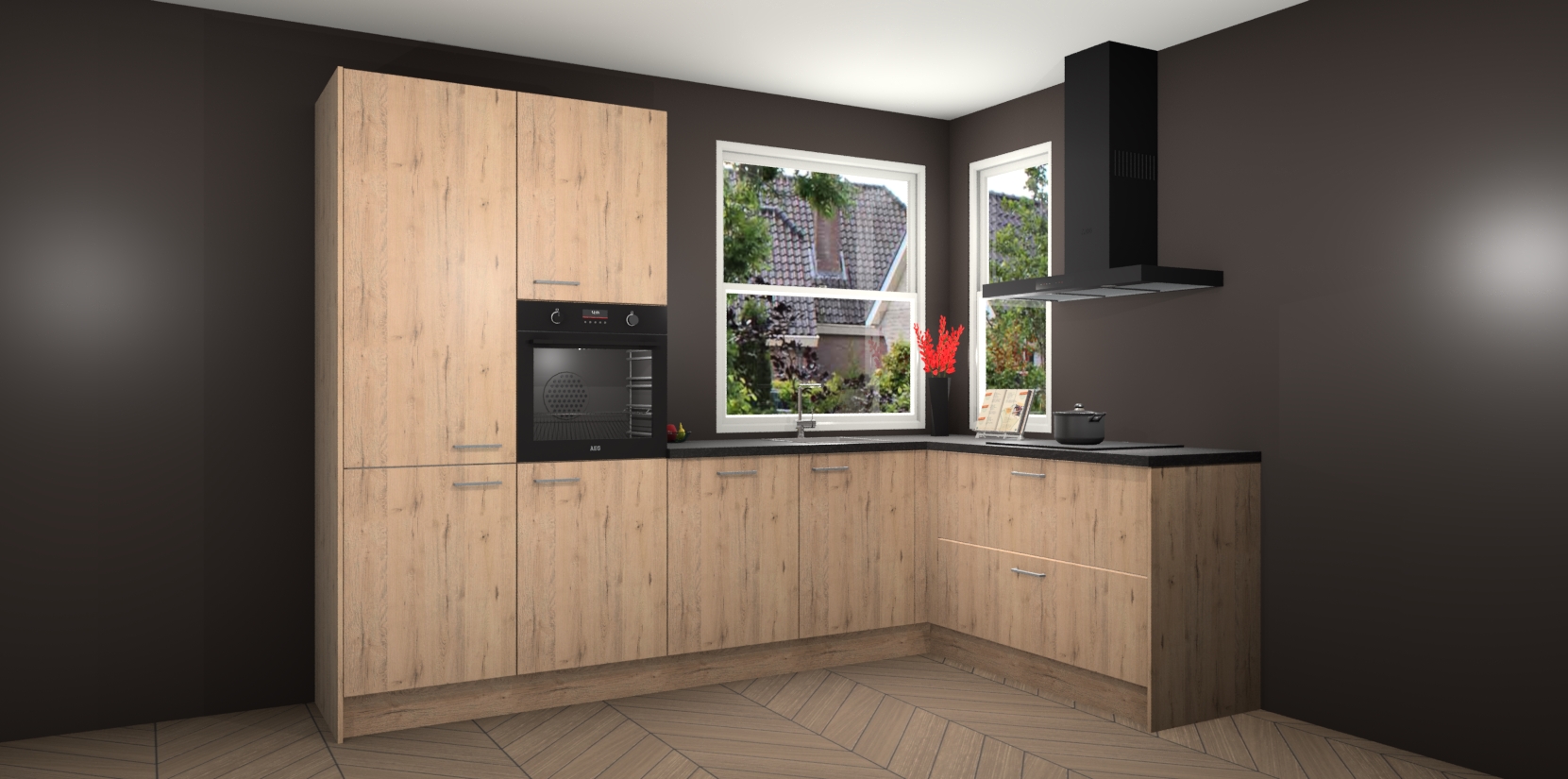 Elke Madera Natuur keuken Kotor wordt compleet geleverd met vijf inbouwapparaten, waaronder een oven, inductiekookplaat, afzuigkap, vaatwasser en koelkast. Sterker nog - indien gewenst kunt u deze apparaten na bestelling eenvoudig upgraden naar AEG! Extra functies zijn onder andere soft close deuren voor extra gemak, en elke kast wordt voor gemonteerd geleverd zodat u sneller van uw nieuwe keuken kunt genieten.