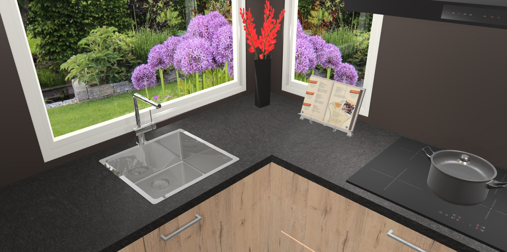 - Bij een hoekwerkblad zijn de hoeken in gevreesd en op maat gemaakt