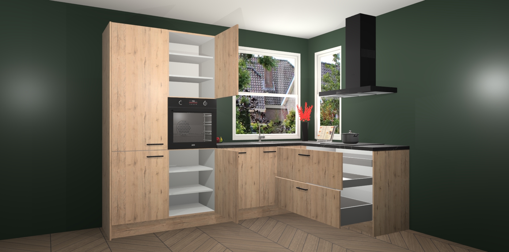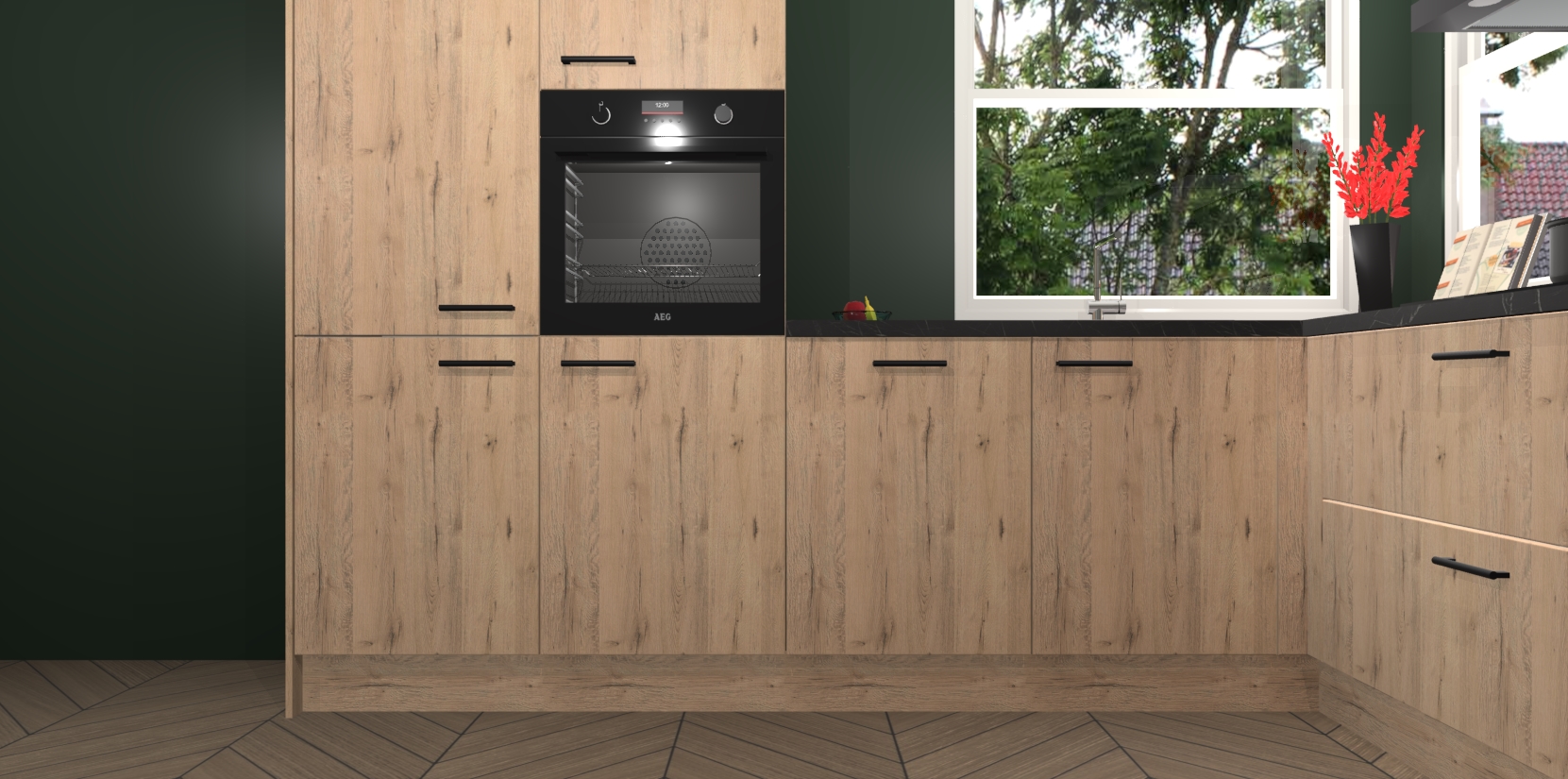 Elke Madera Natuur keuken Kotor wordt compleet geleverd met vijf inbouwapparaten, waaronder een oven, inductiekookplaat, afzuigkap, vaatwasser en koelkast. Sterker nog - indien gewenst kunt u deze apparaten na bestelling eenvoudig upgraden naar AEG! Extra functies zijn onder andere soft close deuren voor extra gemak, en elke kast wordt voor gemonteerd geleverd zodat u sneller van uw nieuwe keuken kunt genieten.