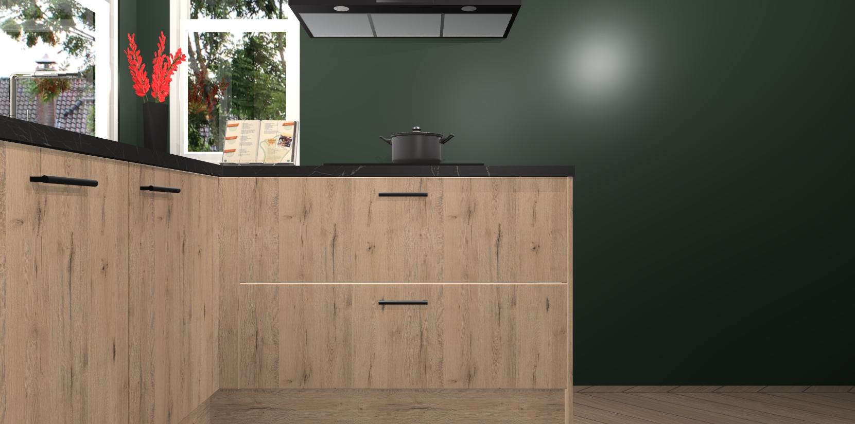 In deze box zijn alle kleuren verzameld van de deuren en werkbladen. Vraag de gratis kleurenbox aan en kijk thuis rustig verder!