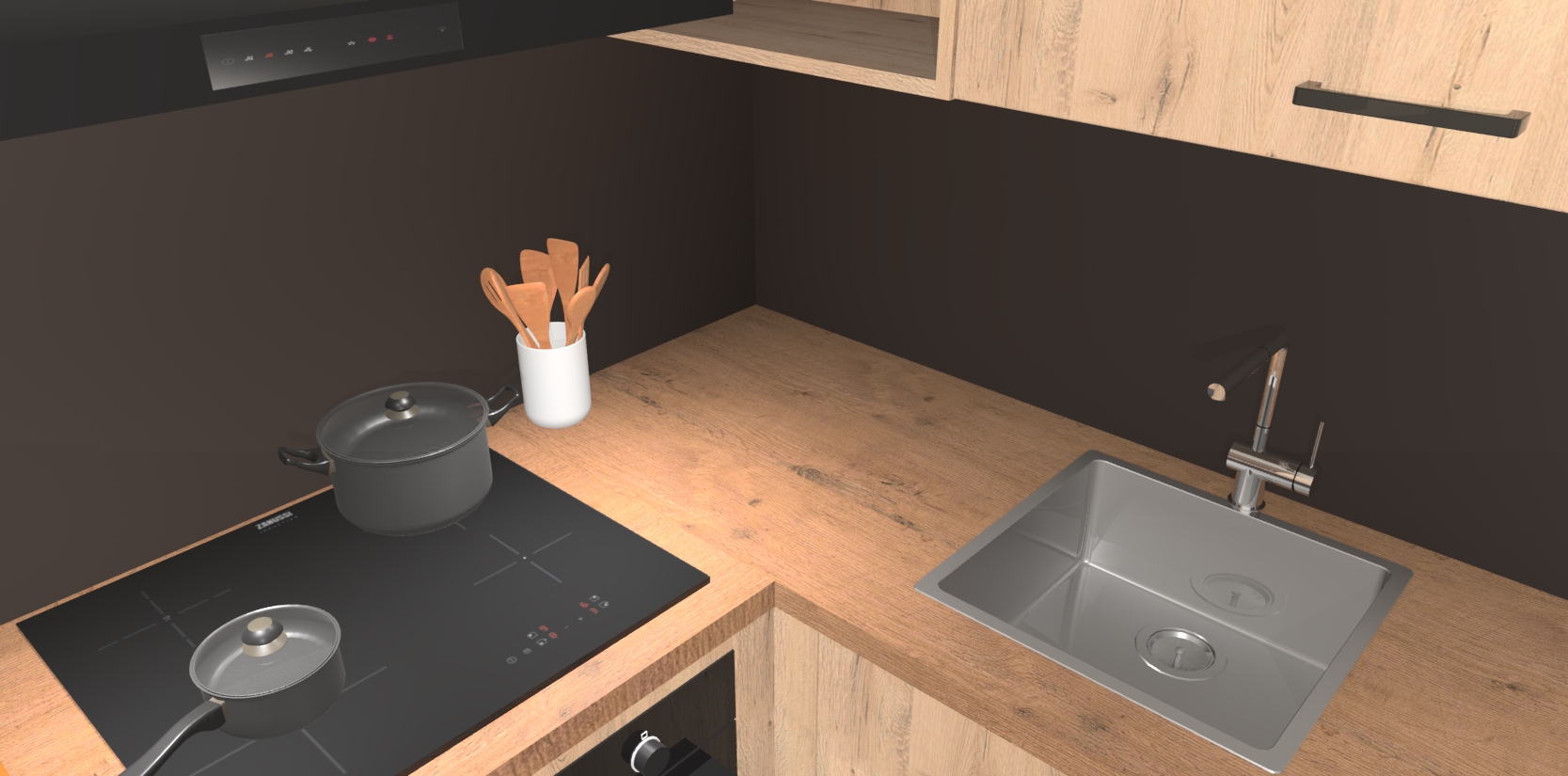 - Uitsparing van kookplaat, spoelbak en kraan dient u zelf te verzorgen.