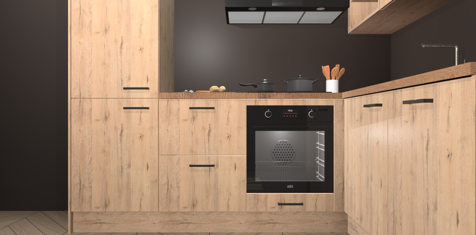 Dit model biedt u voldoende opbergruimte en vijf ingebouwde apparaten: een oven, inductiekookplaat, afzuigkap, vaatwasser en koelkast. Deze apparaten kunnen gemakkelijk worden geüpgrade naar AEG nadat u besteld heeft. De verschillende laden en kastjes bevatten softclose-deuren waardoor ze gezellig dichtvallen met een geruststellend helemaal geruisloos geluid. En dat is nog niet alles! We garanderen ook dat de prijs altijd laag blijft - dus haal nu uw Madera Natuur keuken Krakau terwijl het kan.