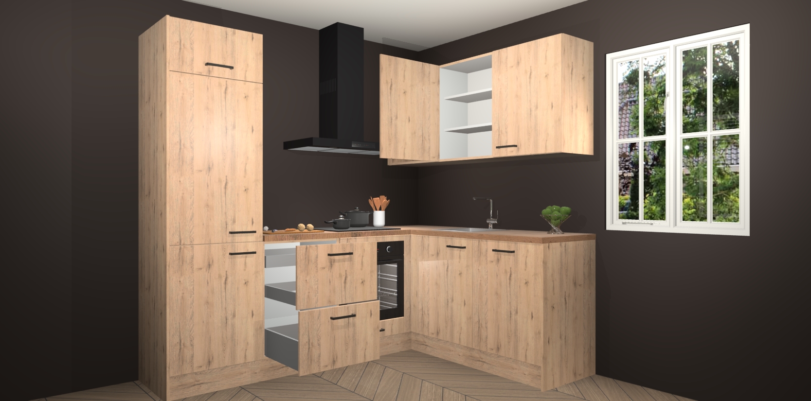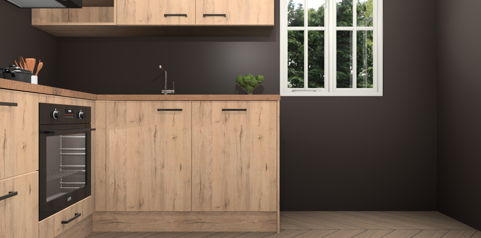 Bestellen was nog nooit zo makkelijk en we leveren met slechts 7 weken; zodra de keuken arriveert staan de kasten voor gemonteerd klaar om er alles aan te doen dat u hem gemakkelijk zelf kunt installeren! Eén ding is zeker: met de Madera Natuur keuken Krakau slaagt u erin modischer, modernere keukens uit te rusten die tientallen jaren meegaan! Haal snel uw Madera Natuur keuken Krakau - of u nu net begint of al 'levenservaring' hebt in de keukendroomloopbaan - want dit topmodel van onze collectie wilt u absoluut niet missen.