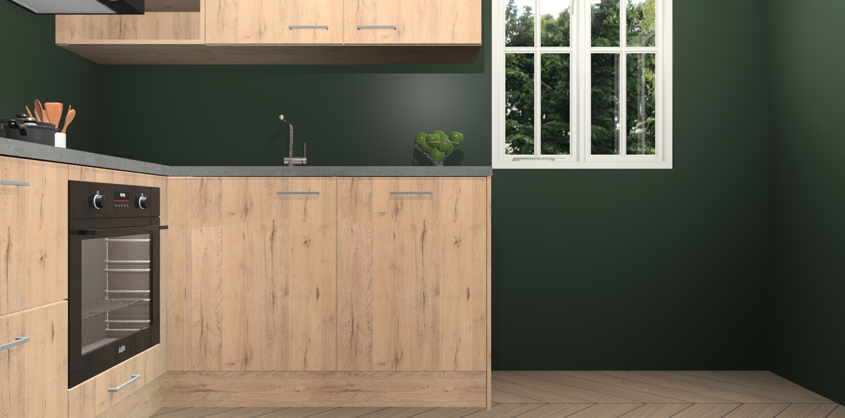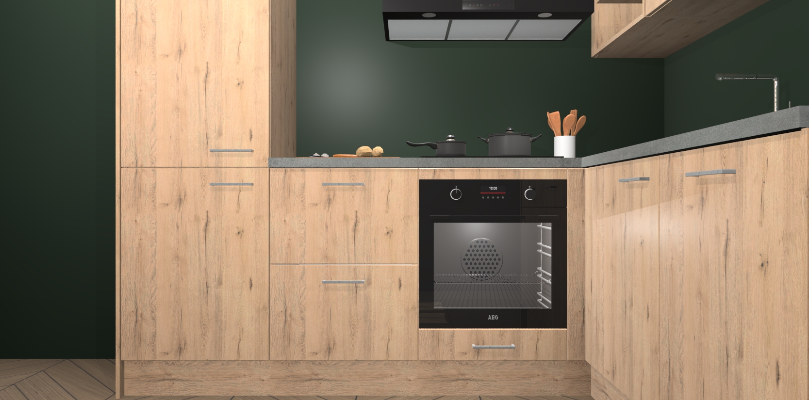 Dit model biedt u voldoende opbergruimte en vijf ingebouwde apparaten: een oven, inductiekookplaat, afzuigkap, vaatwasser en koelkast. Deze apparaten kunnen gemakkelijk worden geüpgrade naar AEG nadat u besteld heeft. De verschillende laden en kastjes bevatten softclose-deuren waardoor ze gezellig dichtvallen met een geruststellend helemaal geruisloos geluid. En dat is nog niet alles! We garanderen ook dat de prijs altijd laag blijft - dus haal nu uw Madera Natuur keuken Krakau terwijl het kan.