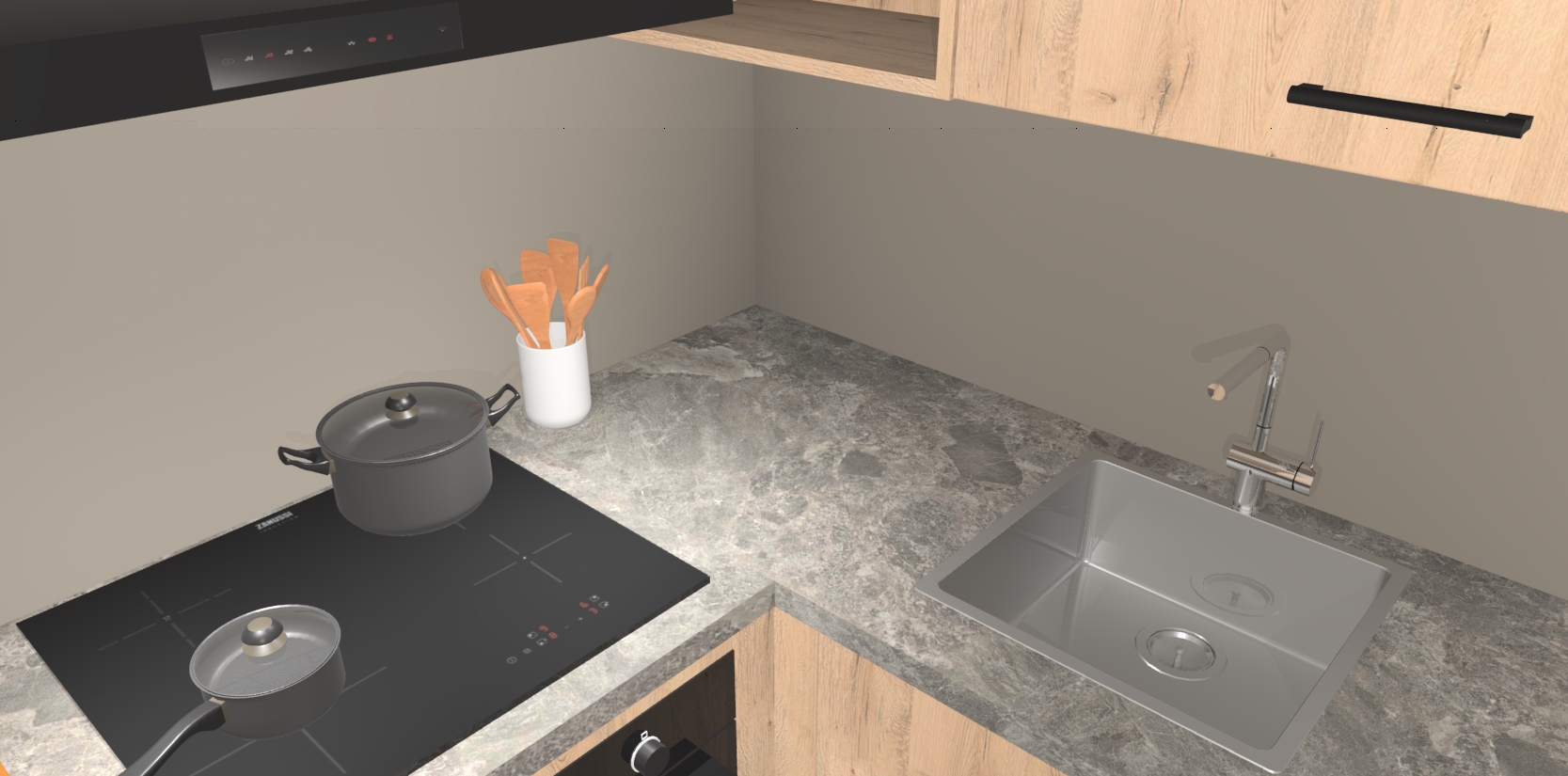 - Uitsparing van kookplaat, spoelbak en kraan dient u zelf te verzorgen.
